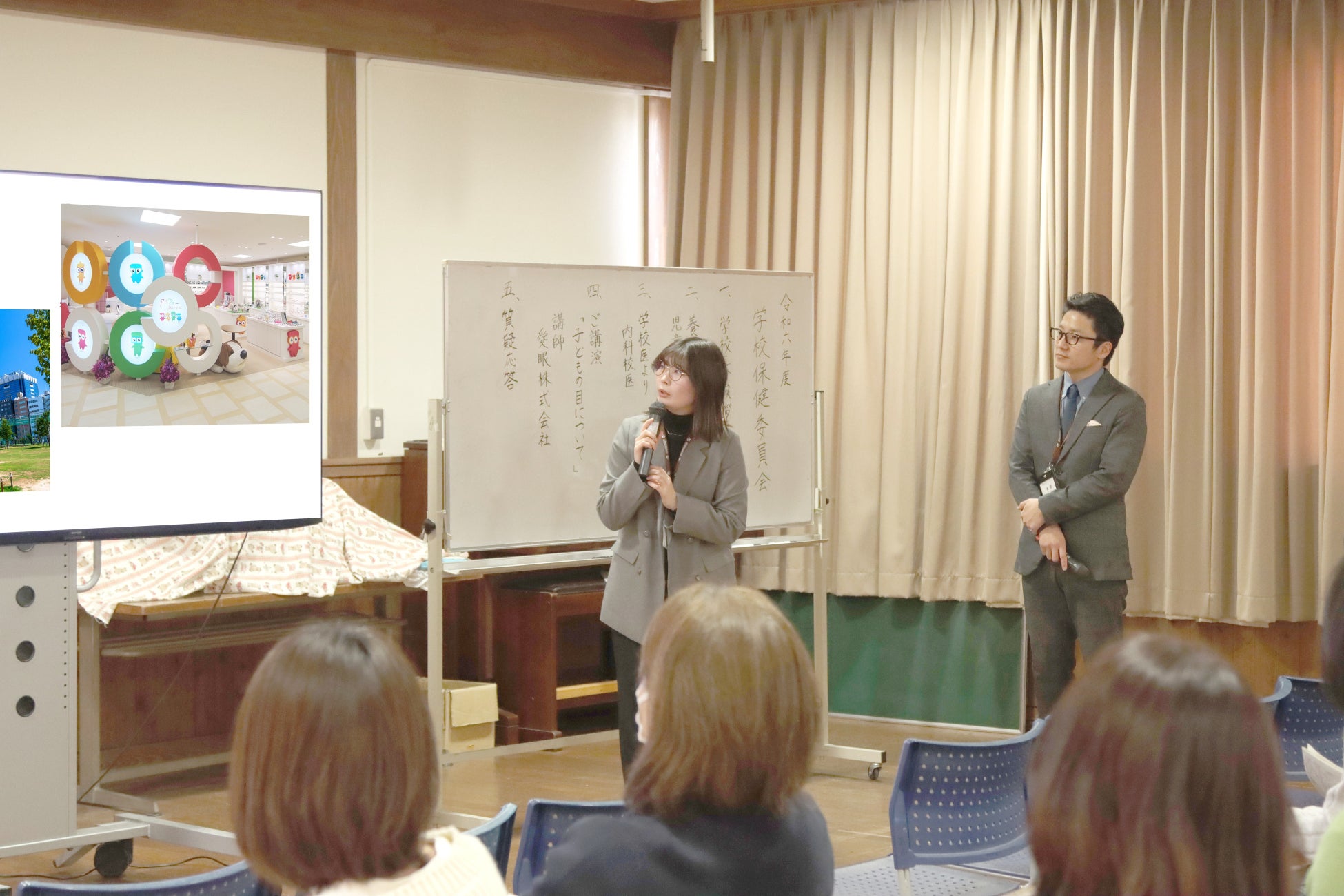 出張授業を実施したこの学校では、毎年学校保健委員会を通して、子どもたちの健康について、学校・家庭・地域が連携して考える機会を設けています。今回は、保護者や担任から「子どもたちの視力について気になる」という声を受け、弊社が授業を行う機会を頂きました。