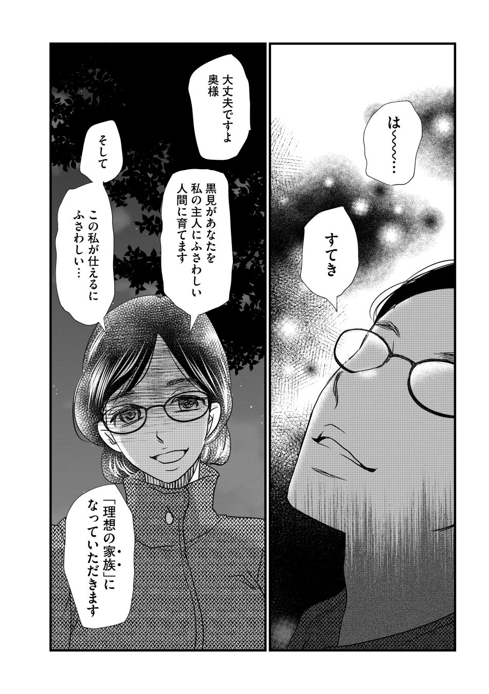 黒見の家政婦としての仕事ぶりはたしかなもので、家族に歓迎されすぐに打ち解けるが、そんな彼女にはある秘密があった。