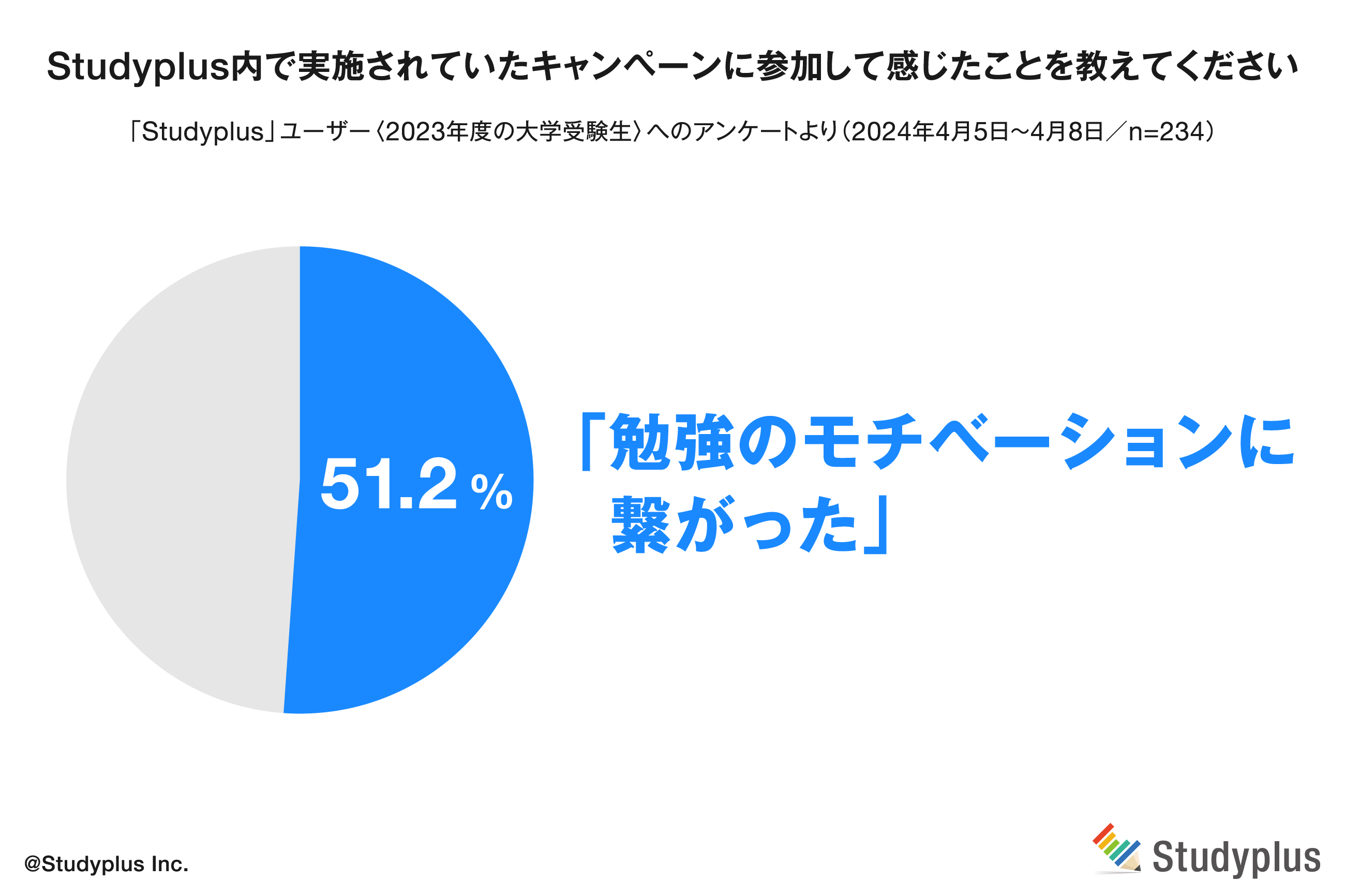 アンケートでは、キャンペーンに参加経験のあるユーザー(回答者の35.2%にあたる234名)のうち8割以上が『参加して良かった』と回答しており、半数以上が『勉強のモチベーションに繋がった』と回答しました。
