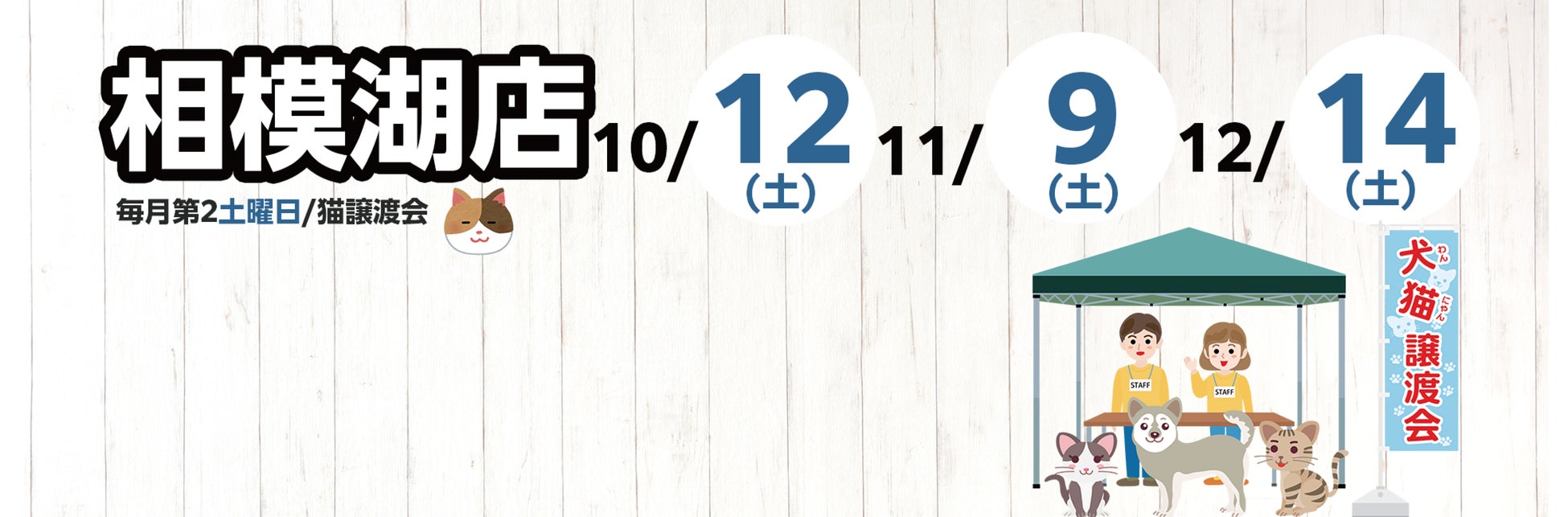 綿半パートナーズ株式会社(長野県飯田市 代表取締役社長:野原勇)はこの度、綿半ホームエイド相模湖店にて保護犬・保護猫の譲渡会を実施します。