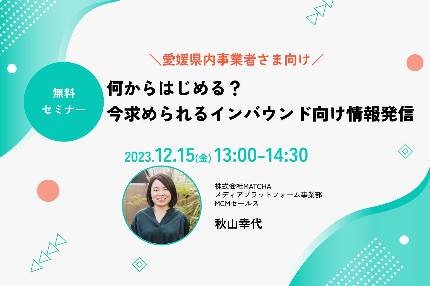 愛媛県にて、【愛媛県内事業者さま向け】何からはじめる?今求められるインバウンド向け情報発信セミナーを開催いたします。