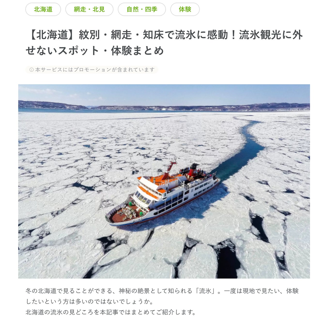 1位:【北海道】紋別・網走・知床で流氷に感動!流氷観光に外せないスポット・体験まとめ(https://matcha-jp.com/jp/13357 )