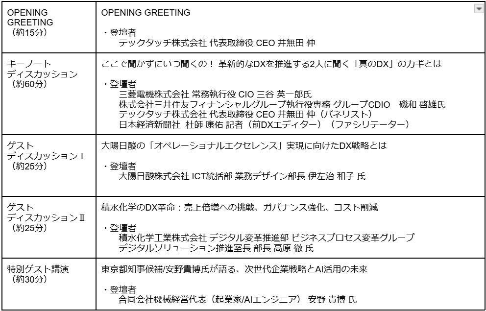 デジタルアダプションプラットフォーム(DAP)国内シェアNo.1の「テックタッチ」を開発・提供するテックタッチ株式会社(本社:東京都港区、代表取締役 CEO:井無田仲、以下 当社)は、大手企業向けカンファレンス「Techtouch Day 2024」のアーカイブ配信を開始しました。このイベントではDX推進における最前線の課題と解決策を、業界をリードする専門家たちと共に深掘りし、AI活用についても最新の知見が紹介されました。