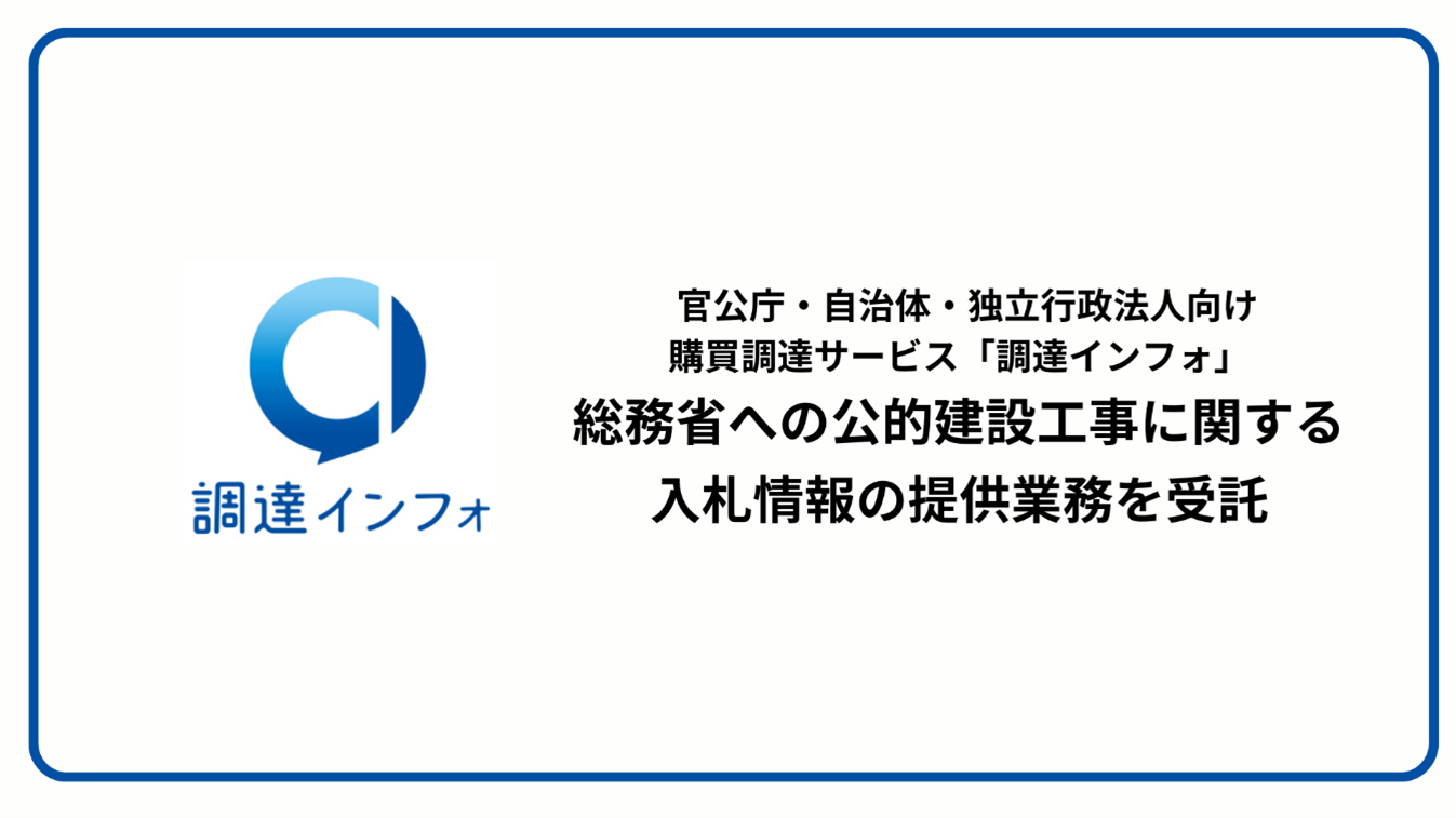 官公庁・自治体・独立行政法人向け購買調達サービス「調達インフォ」、総務省への公的建設工事に関する入札情報の提供業務を受託