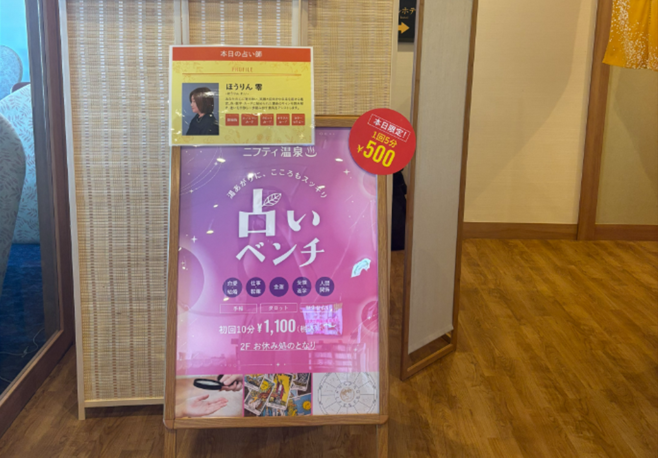 体制強化後の第一弾として、2026年1月28日(水)より「成田空港温泉 空の湯」(千葉県成田市)にて「占いベンチ」のサービス提供を開始いたします。