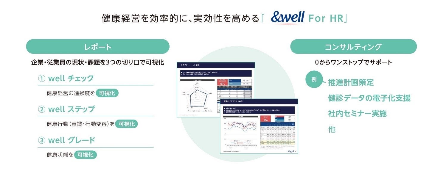 施策の評価・可視化を行う人事・健康担当者向けの「&well for HR」では&wellレポートおよびコンサルティングサービスを本格稼働させています。
