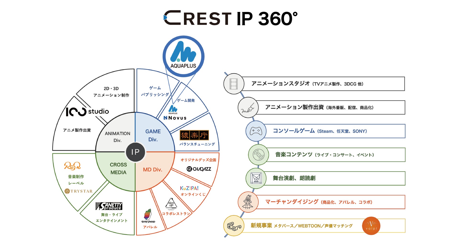 CRESTは、企画開発力に長け、豊富なIPを保有するアクアプラスをグループに加えることで、ゲーム事業の拡大及びIPの360°展開の拡大をグローバルで目指してまいります。