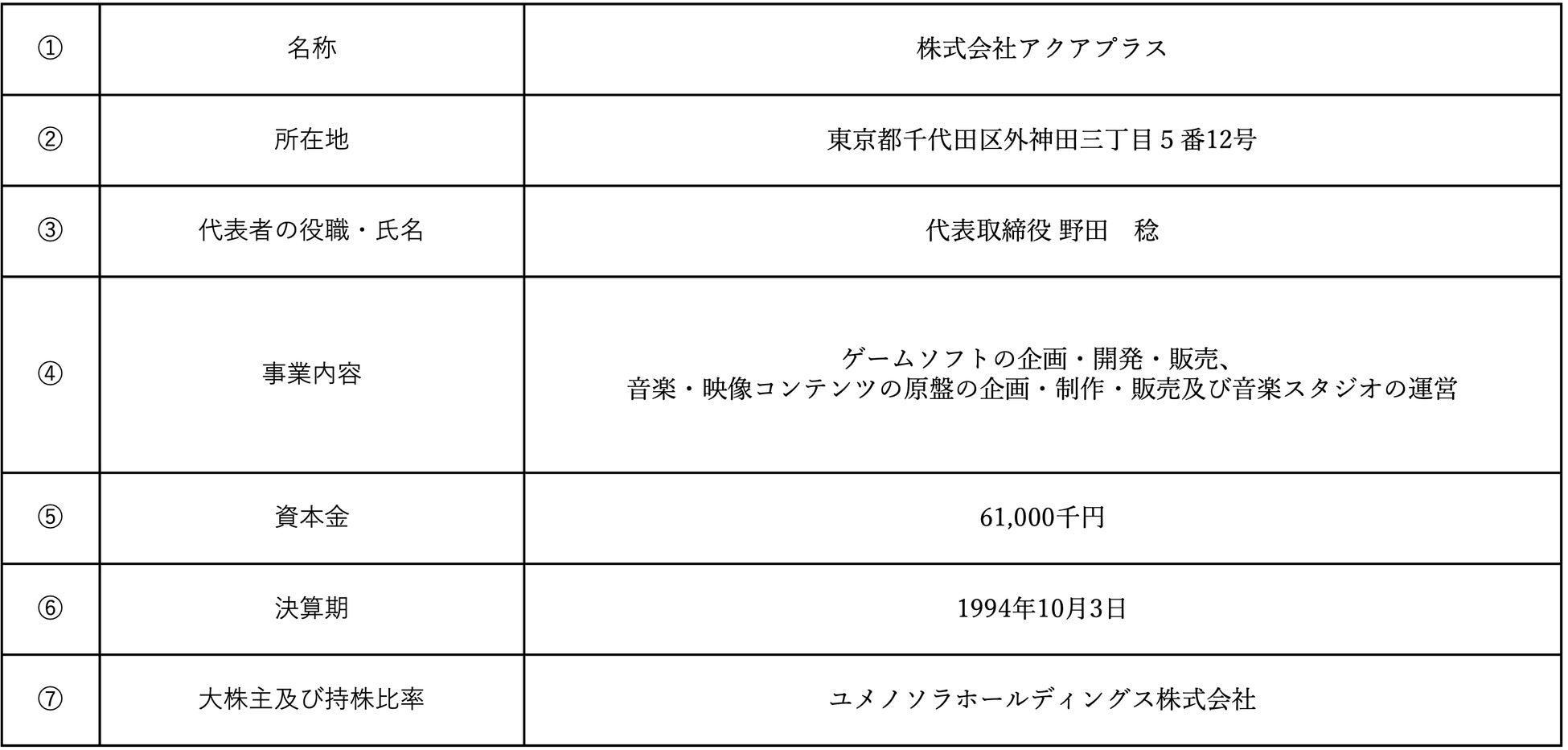 - 異動する子会社(①アクアプラス、②フィックスレコード)の概要
