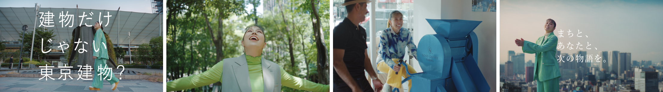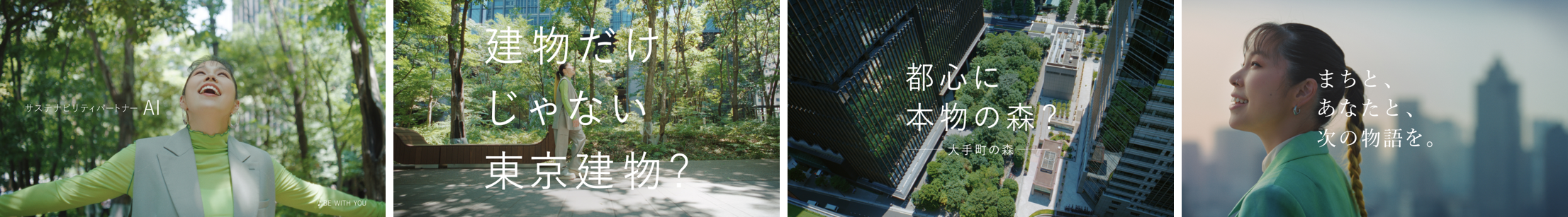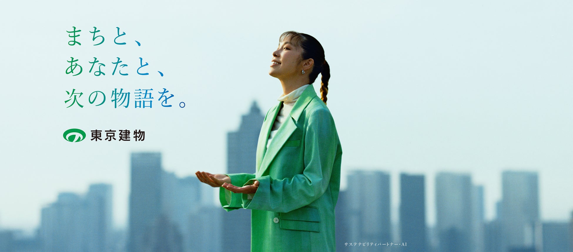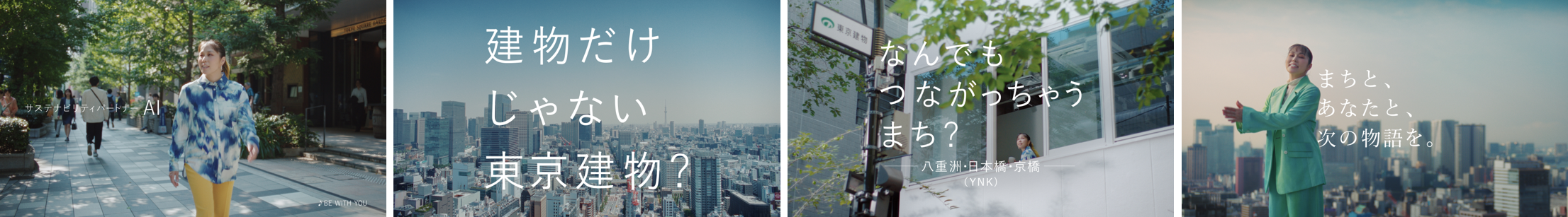 今回の新CMでは、2022年9月に東京建物サステナビリティパートナーに就任したAIさんが、東京建物が取り組む数々のまちづくりの現場の中から、「大手町の森」(東京都千代田区)と「八重洲・日本橋・京橋(YNK)」(東京都中央区)を実際に訪れ、まちの人びとや東京建物社員との出会いを通じて東京建物のまちづくりの現場を体験し、AIさんご自身の言葉でリポートしていただきました。CMの最後に掲げられるキャッチコピー「まちと、あなたと、次の物語を。」には、「人に寄り添い、そのまちに寄り添い、ともに課題を解決していく」という、東京建物の姿勢と想いが込められています。