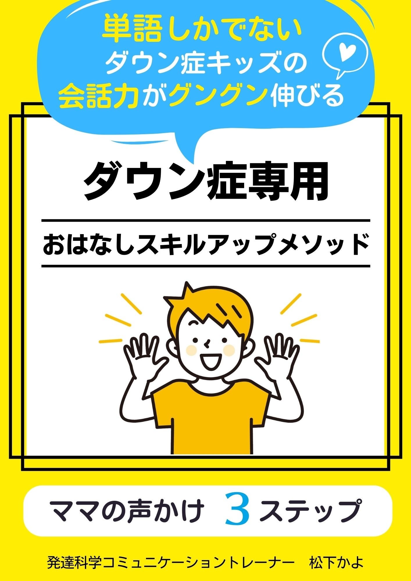 はじめまして。発達科学コミュニケーショントレーナー松下かよです。親子のコミュニケーションをスムーズにしてダウン症キッズを働く人に育てる専門家です。 この度は、行事が増えて、先生の指示や指導が本格化する2学期に、ストレスを溜め込む前に、取り組んでほしく、言葉が単語から進まない、何を言っているのか伝わりにくいダウン症キッズの会話力を伸ばす小冊子をリリースいたしました。