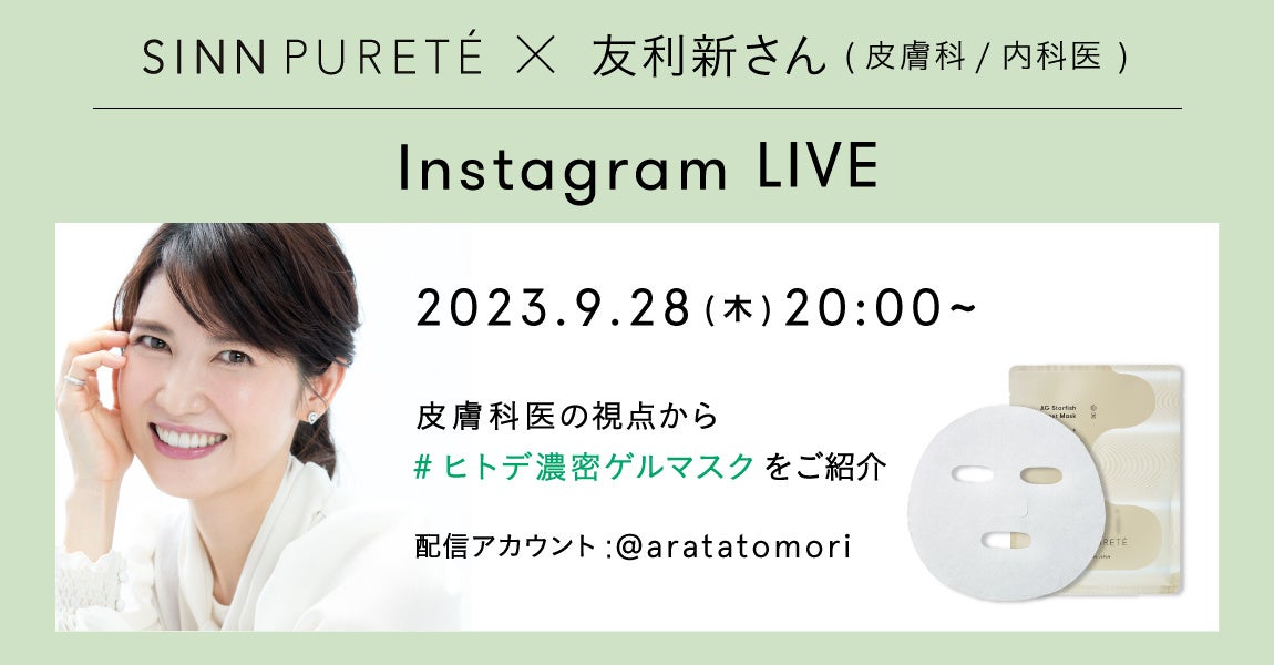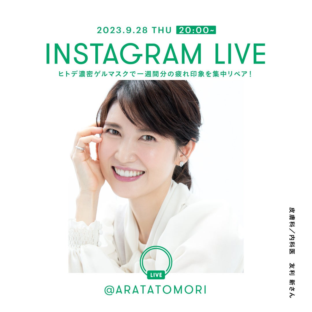 皮膚科医、内科医としての医師という立場から美容と健康を医療として追求し、メディアを通じて、美しく生きるための啓蒙活動を行うクリエイター。「キレイをつくる医師」として、美容と健康を提案されている友利新さんによるInstagram LIVEを開催!#ヒトデ濃密ゲルマスク と大人気のシートマスクについてご紹介いただきます。