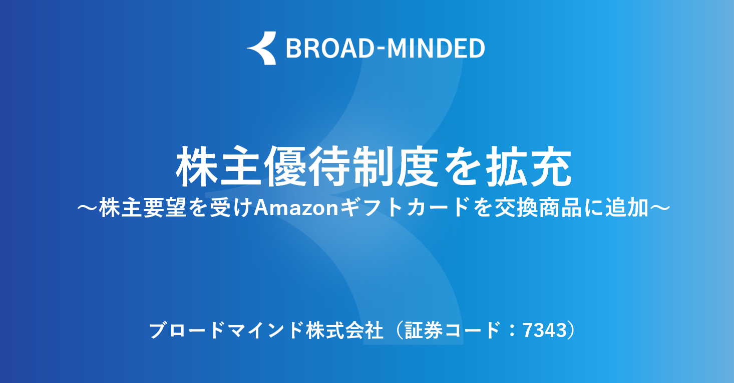 ライフプラン実現を支援する金融サービスを開発・提供するブロードマインド株式会社(本社:東京都渋谷区 代表取締役社長:伊藤清 証券コード:7343 以下:当社)は、2026年3月末時点の株主様を対象とする株主優待制度の拡充について、下記のとおり変更いたしますので、お知らせいたします。