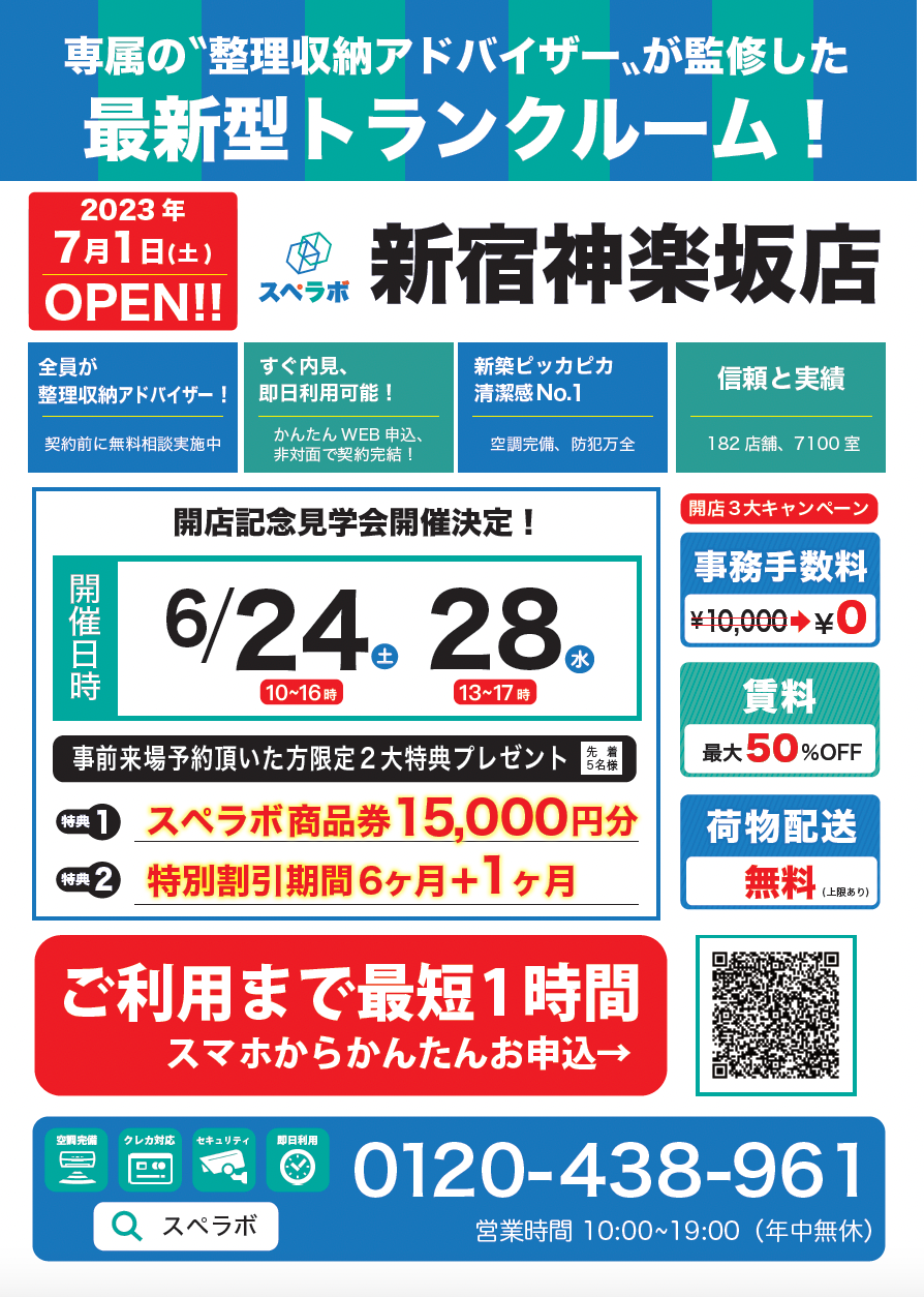 【新宿神楽坂店/7月1日(土)オープン】見学から契約、解約まで完全非接触・非対面、お申し込みからご利用まで最短1時間!都内、大阪などにて絶賛運営中のトランクルーム【スペラボ】が神楽坂駅近くに出店!