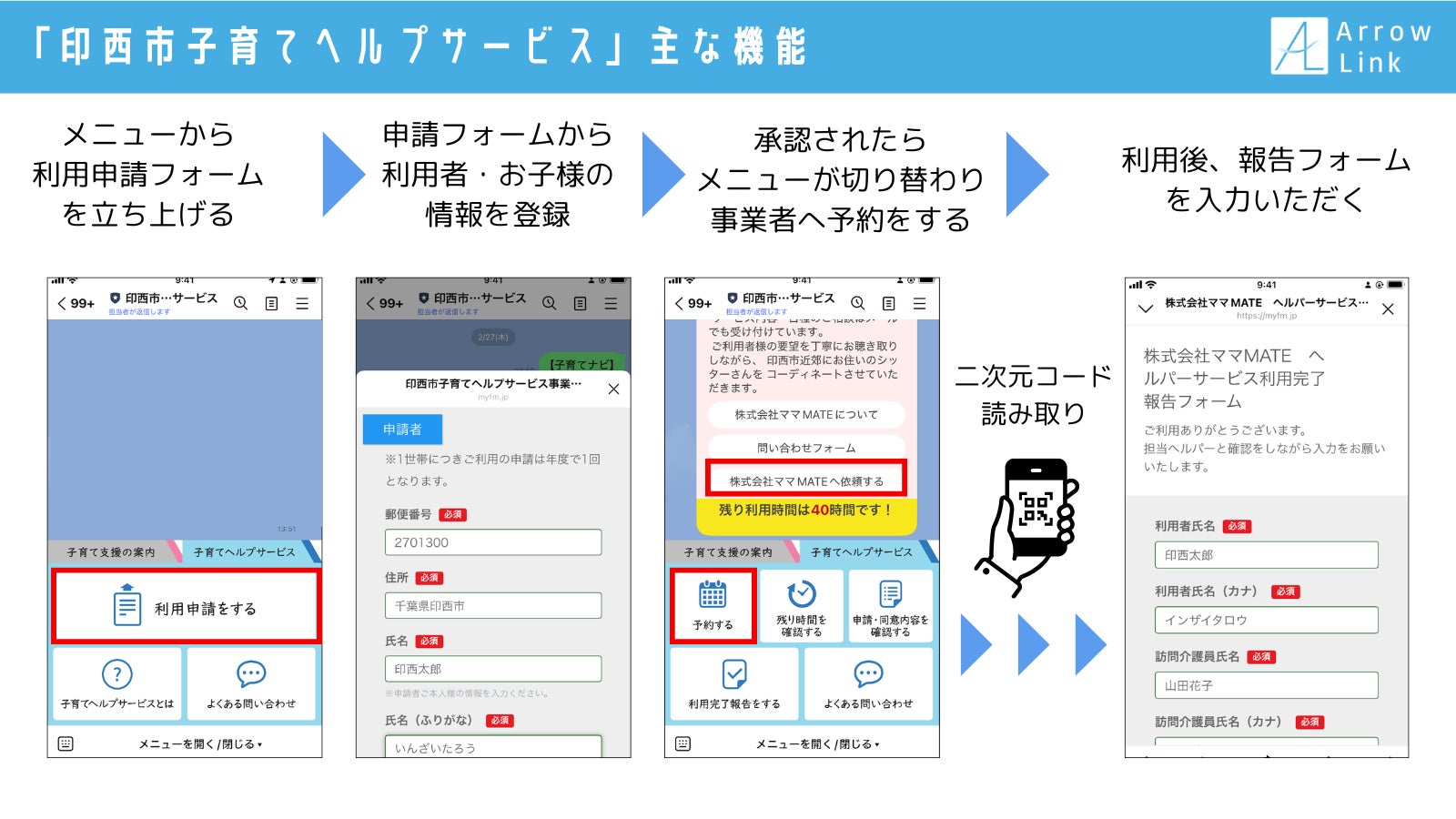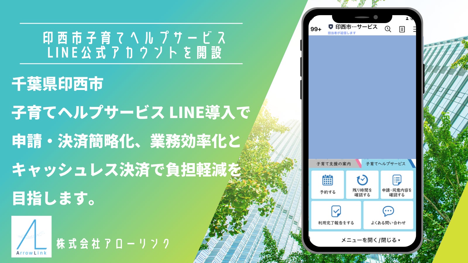 この度、株式会社アローリンク(本社:兵庫県神戸市中央区雲井通4-2-2 マークラー神戸ビル4階、代表取締役:蓬莱和真)は、千葉県印西市(市長:藤代 健吾)がLINE公式アカウント拡張ツールLinyを活用し、市内の子育て世帯に限定した子育てヘルプサービスのオンライン申請・決済可能なLINE公式アカウントを開始しました。