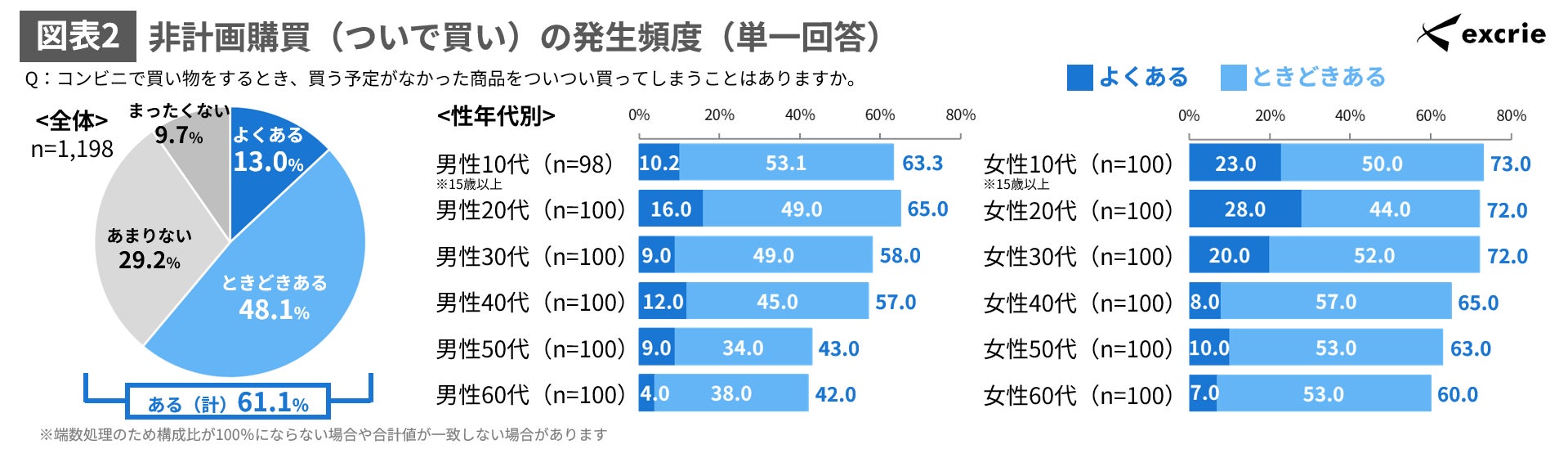コンビニでのついで買いは61.1%が経験、若年女性層では7割超(エクスクリエ調べ)