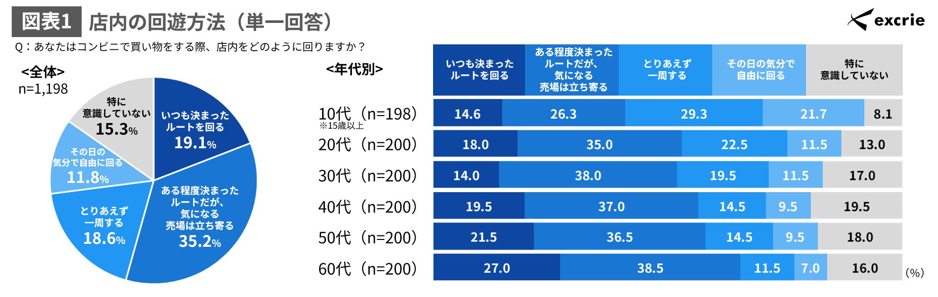 コンビニの店内回遊、10代は他年代と比べて「とりあえず一周」「その日の気分で自由に」