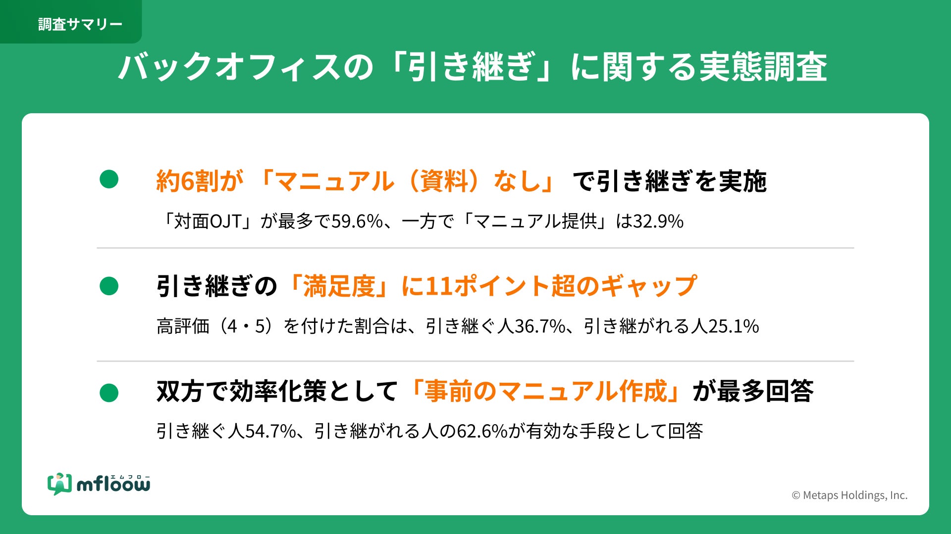 約6割のバックオフィス担当者がマニュアルなしで引き継ぎ対応、伝える側・受け取る側で手応えにズレも