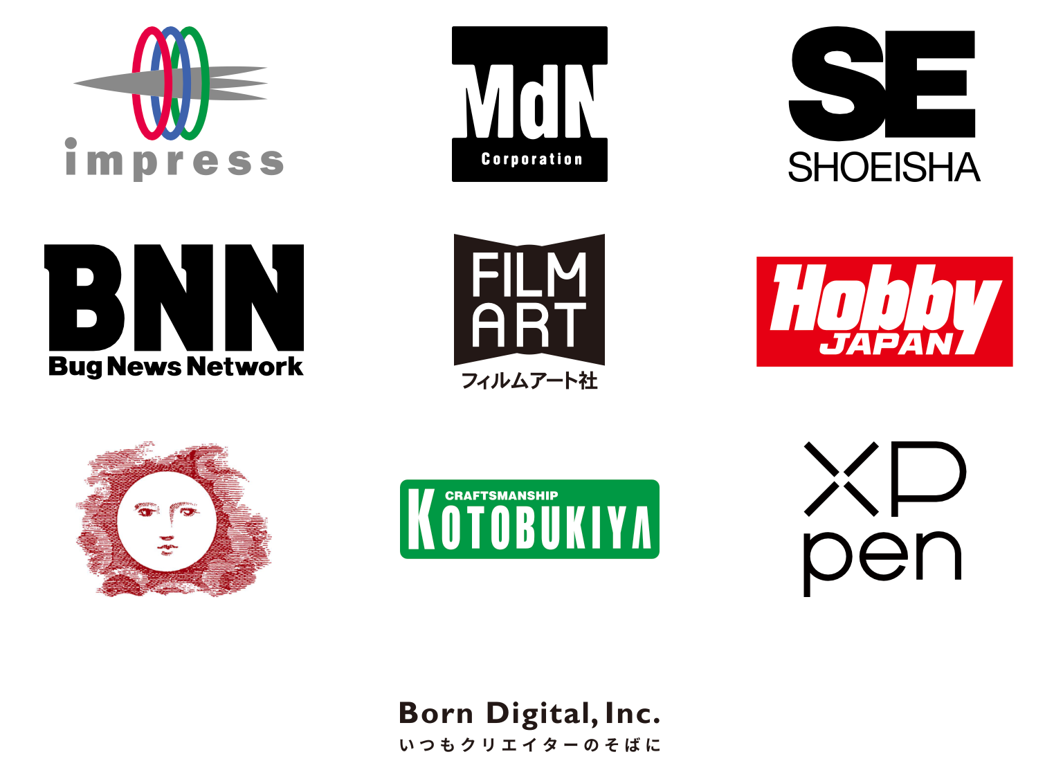 株式会社インプレス、株式会社エムディエヌコーポレーション、株式会社翔泳社、株式会社ビー・エヌ・エヌ、株式会社フィルムアート社、株式会社ホビージャパン、株式会社マール社、株式会社 壽 屋、XPPen JAPAN、株式会社ボーンデジタル |