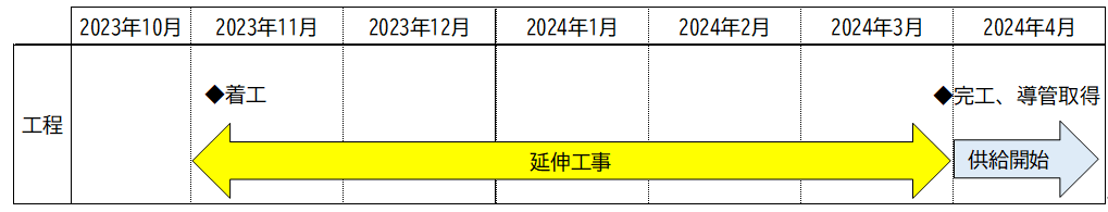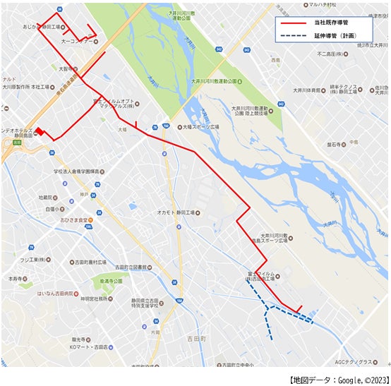 当社は、2014年1月より大井川西岸地域において、自社パイプラインにより同地域の工場等へ都市ガスを供給してまいりました。今回、新たに大井川下流域に都市ガスパイプラインを敷設することで、供給エリアの拡大を図るとともに、都市ガス普及を促進することで地域の脱炭素化に貢献してまいります。なお、同エリアにおける都市ガスの供給開始は、2024年4月を予定しており、工事につきましては、地域の皆さまおよび関係各所のご理解・ご協力をいただきながら、安全を最優先に進めてまいります。