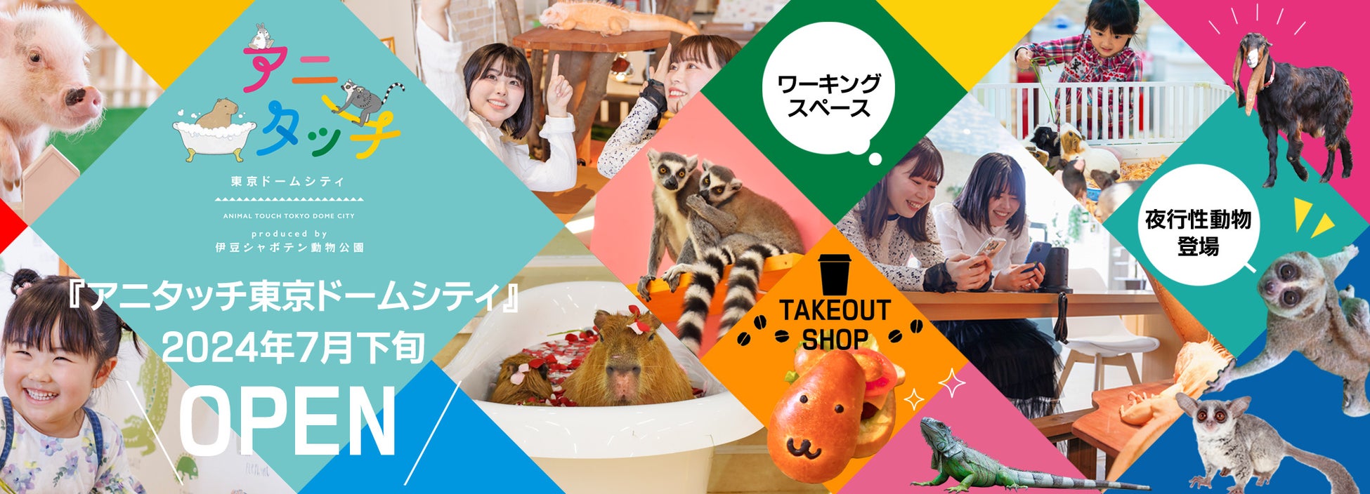 東京ドームシティ「黄色いビル」1Fに都内最大の屋内型ふれあい動物園『アニタッチ東京ドームシティ』7月下旬オープン予定!