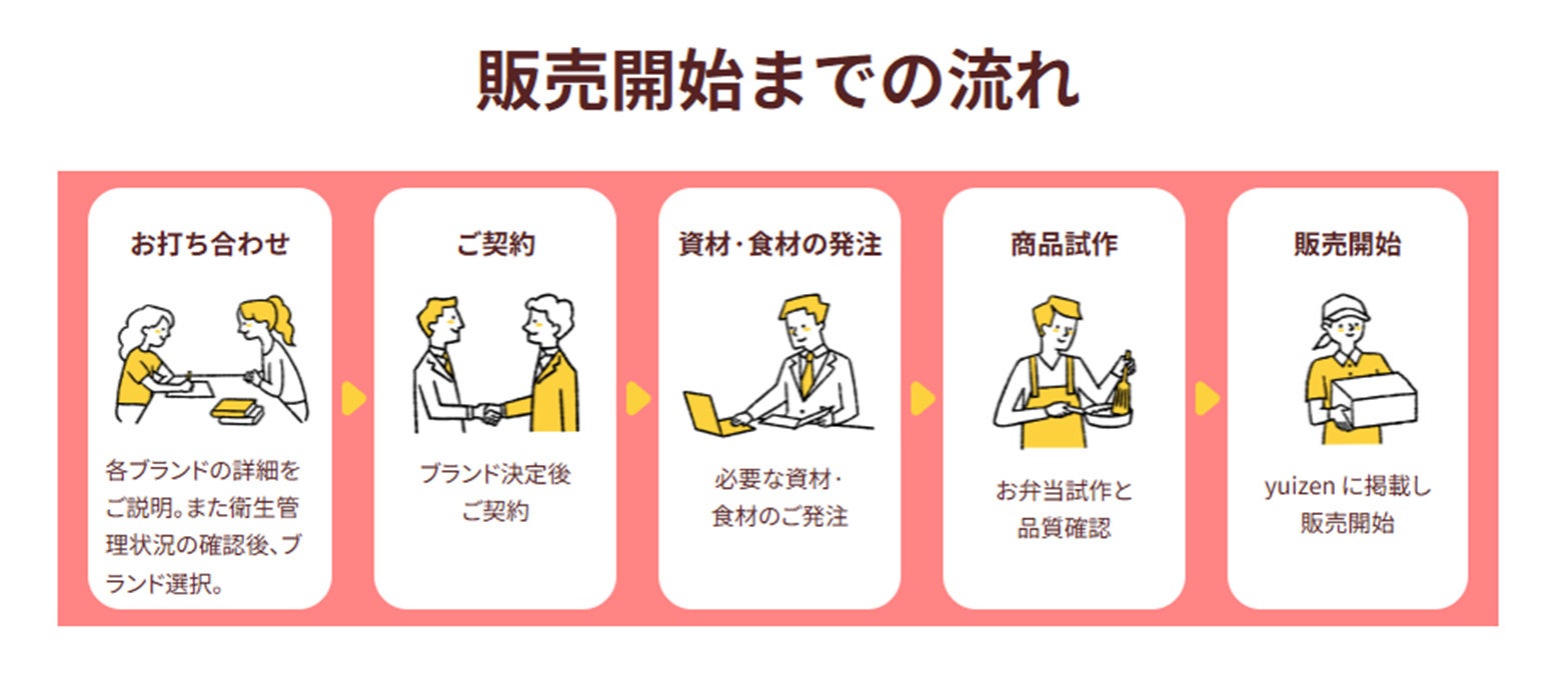 各地方の人気店や有名店、yuizenオリジナルブランドなどのブランドでお弁当販売が可能なご契約プランです。