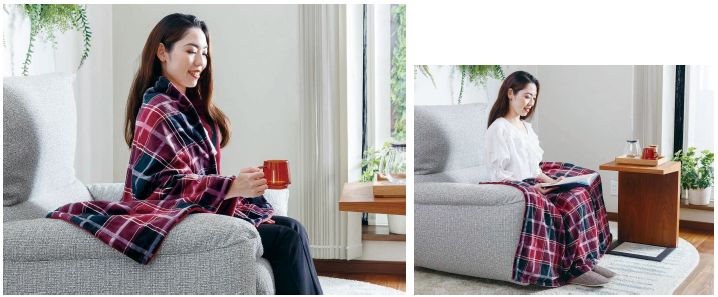 ブランケットとフットウォーマーはUSB電源を使用可能で、PCやモバイルバッテリー・USB ACアダプターに繋げてオフィス・自宅・移動中など場所を選ばず便利に使えます。