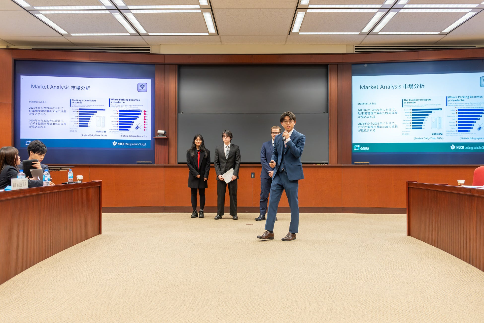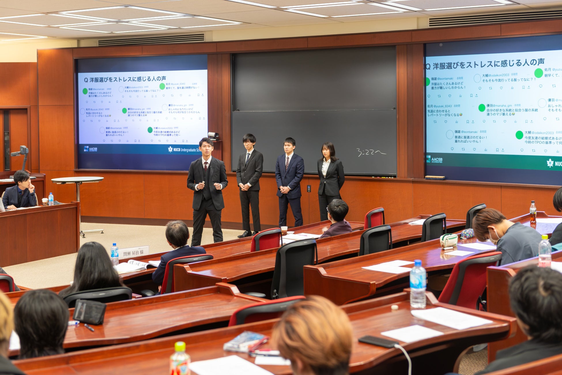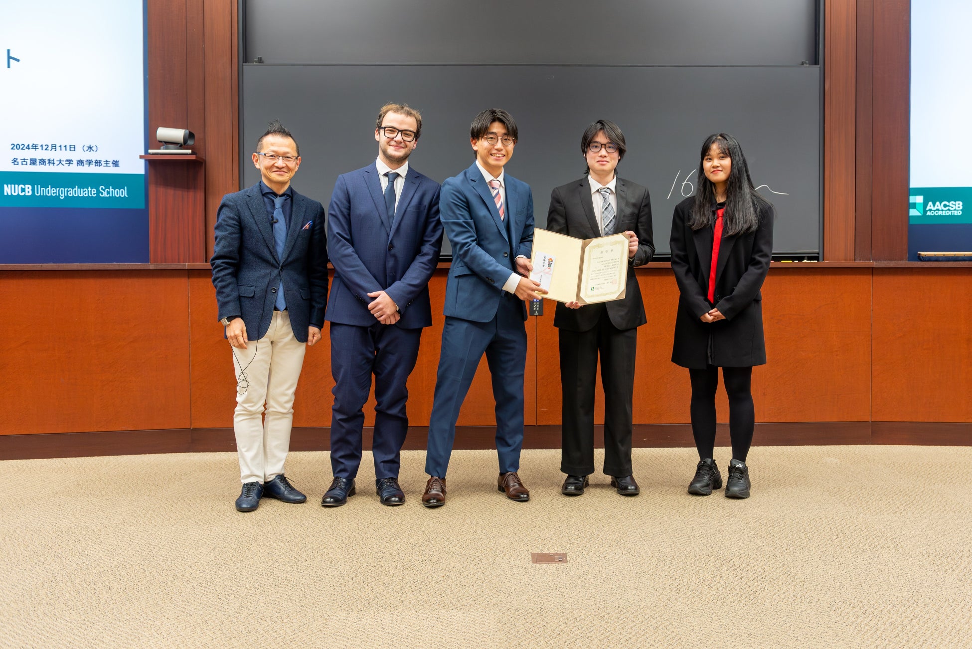 名古屋商科大学商学部主催の「第4回ビジネスプランコンテスト」の最終審査が、2024年12月11日(水)に開催されました。留学生も含む全8チームの熱のこもったプレゼンテーションが繰り広げられ、聴講学生からはビジネスプランをよりよくしようという熱意のこもった意見、審査員からはビジネスの現場の視点を踏まえた質問が飛び交い、大いに盛り上がりました。