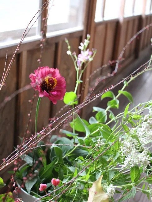 参加者は柏崎や長岡、高越など新潟県内各地から集まり、中には片道2〜3時間かけて駆けつけた方も。普段は入れない渡邉邸のお部屋に入室し、美しい庭園を眺めながら、お花を生け替えては写真を撮るなど、穏やかで華やかな雰囲気に包まれました。生けたお花は持ち帰ることができ、家でも季節を楽しめる工夫がなされています。