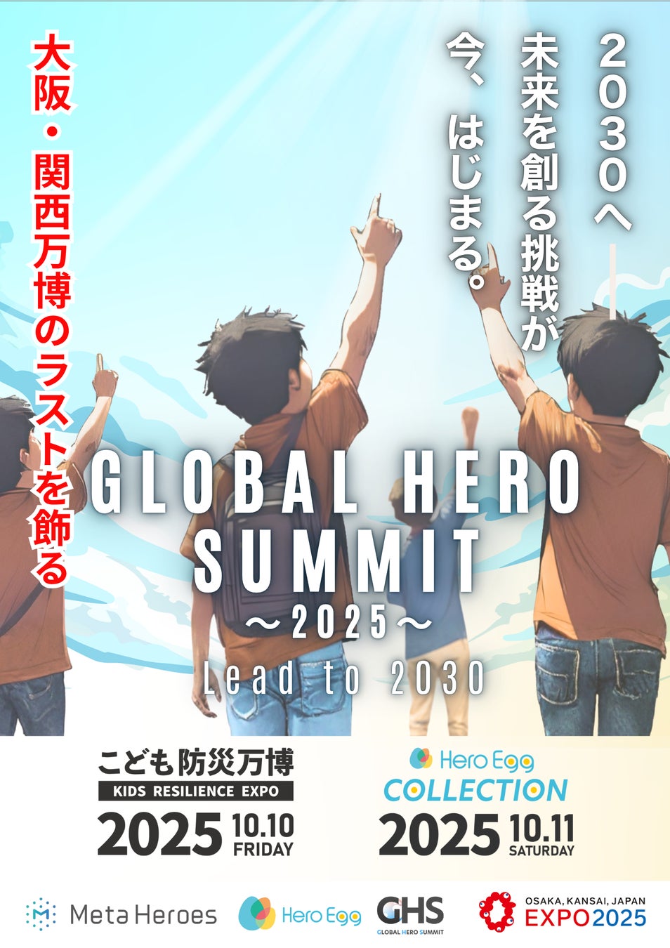 株式会社Meta Heroes(本社:大阪府大阪市、代表取締役:松石和俊、以下「当社」)は、2025年10月10日(金)、大阪・関西万博EXPOメッセ「WASSE」で開催される「未来のトビラをひらく『こども万博』」のステージにて、GLOBAL HERO SUMMIT(GHS)1日目のプログラム「こども防災万博」を開催いたします。