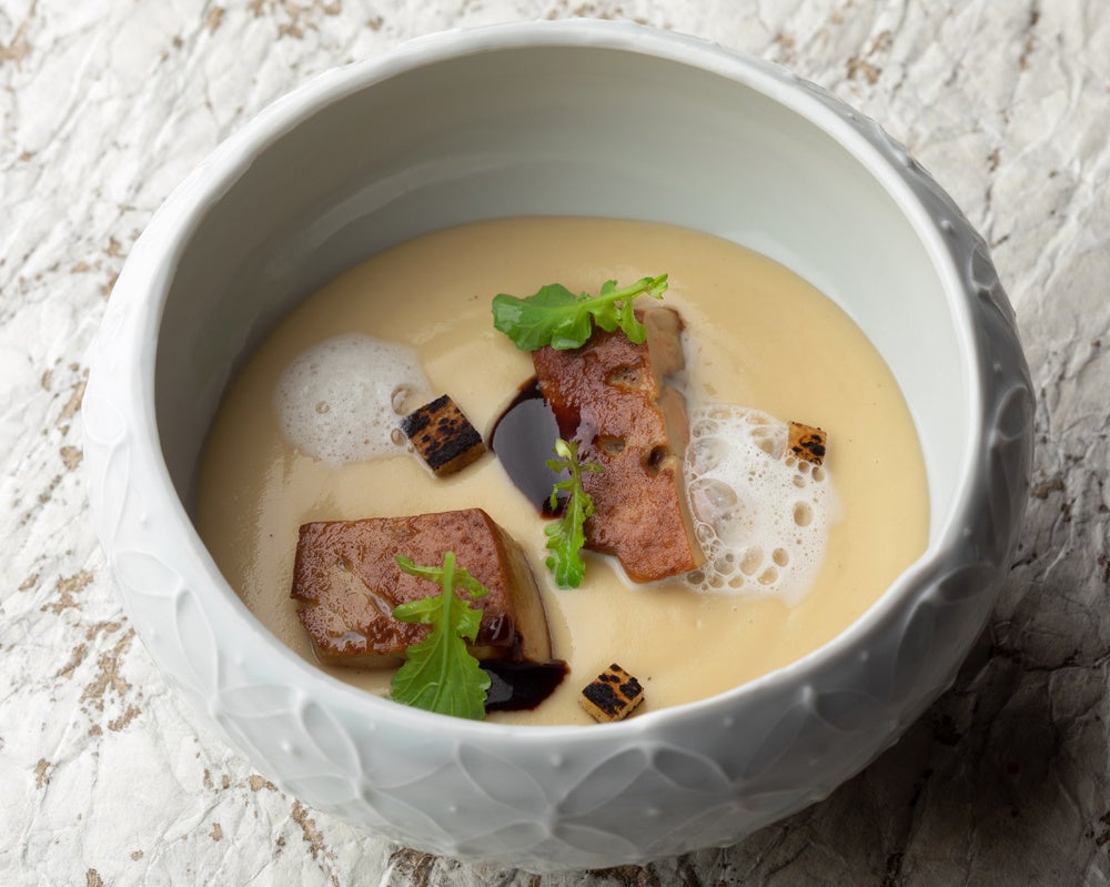・京都産干し芋のヴルーテ フォワグラのポワレ ペリグーソース