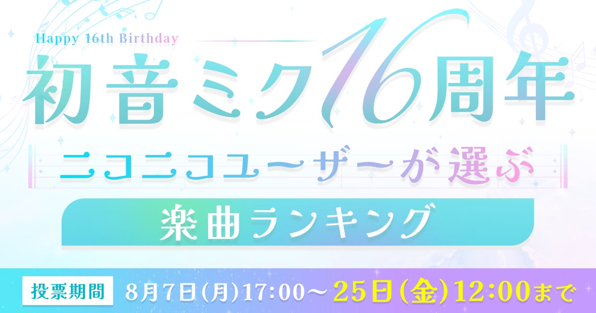 ~初音ミク生誕16周年記念~ ニコニコユーザーが選ぶ! 初音ミク楽曲人気投票企画8月7日(月)より投票受付スタート