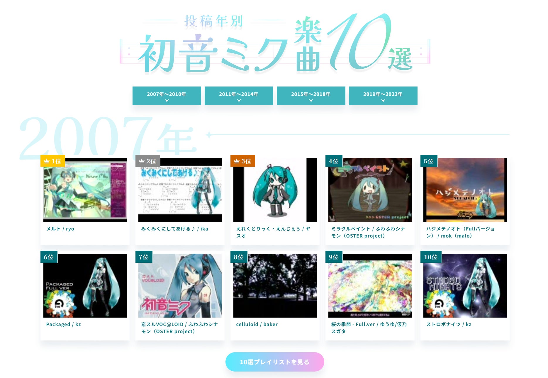 2007年~2023年、各年の人気曲トップ10も本日公開