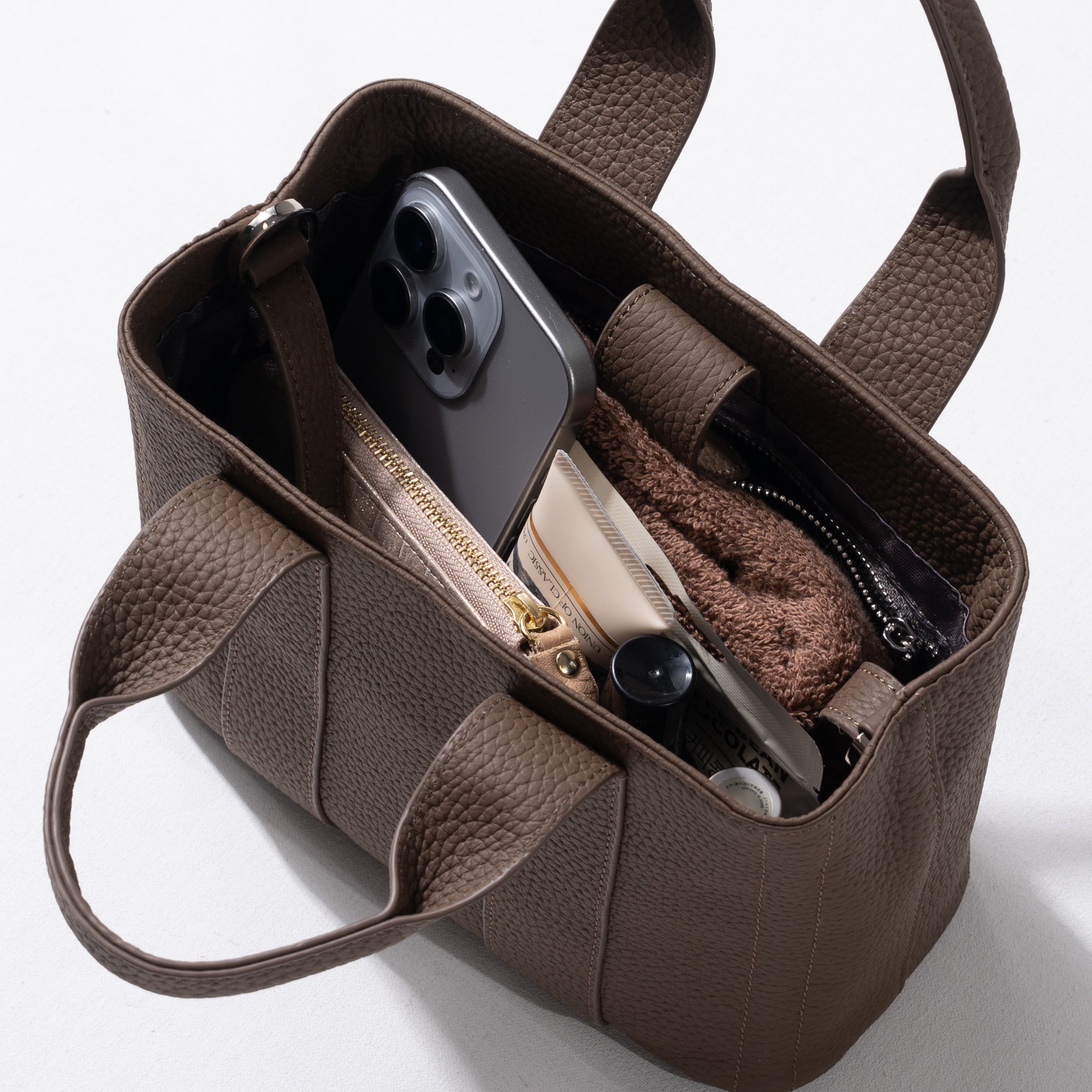 女性にとって小さくも大切な課題が達成できるアイテムのひとつでありたいと考えています。カジュアルさとフォーマルのバランス感覚を大切に、 様々なスタイリングと相性良くコーディネートできることを意識し、 ほどよくトレンドをキャッチしつつも、シンプルでベーシックに使えるアイテムを中心に、使い込むほどに革の経年変化を楽しめるサステナブルを考えた本革バッグを中心にご用意しております。めまぐるしくスタートする今日を、イメージどおりの自分に変える、課題解決を目指す大人の女性のためのブランドです。
