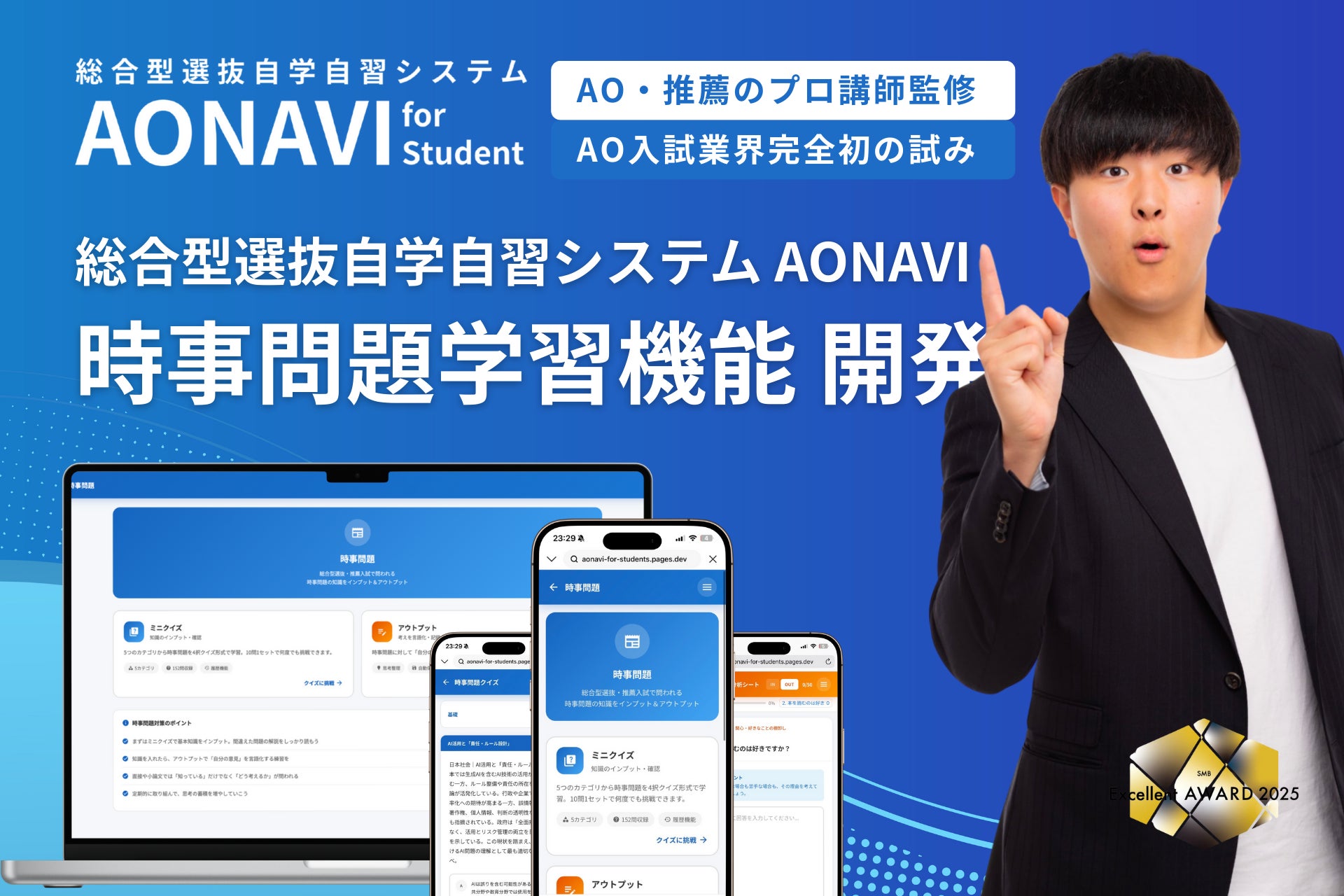 株式会社EQAO教育グループ(本社:東京都港区、代表取締役:玉村ナオ)は、総合型選抜および学校推薦型選抜対策に特化した自学自習システム「AONAVI」において、時事問題の理解・記録・投稿・評価・共有を可能にする「時事問題学習機能」の開発を進めていることを発表いたします。本機能は2026年3月末の正式リリースを予定しています。