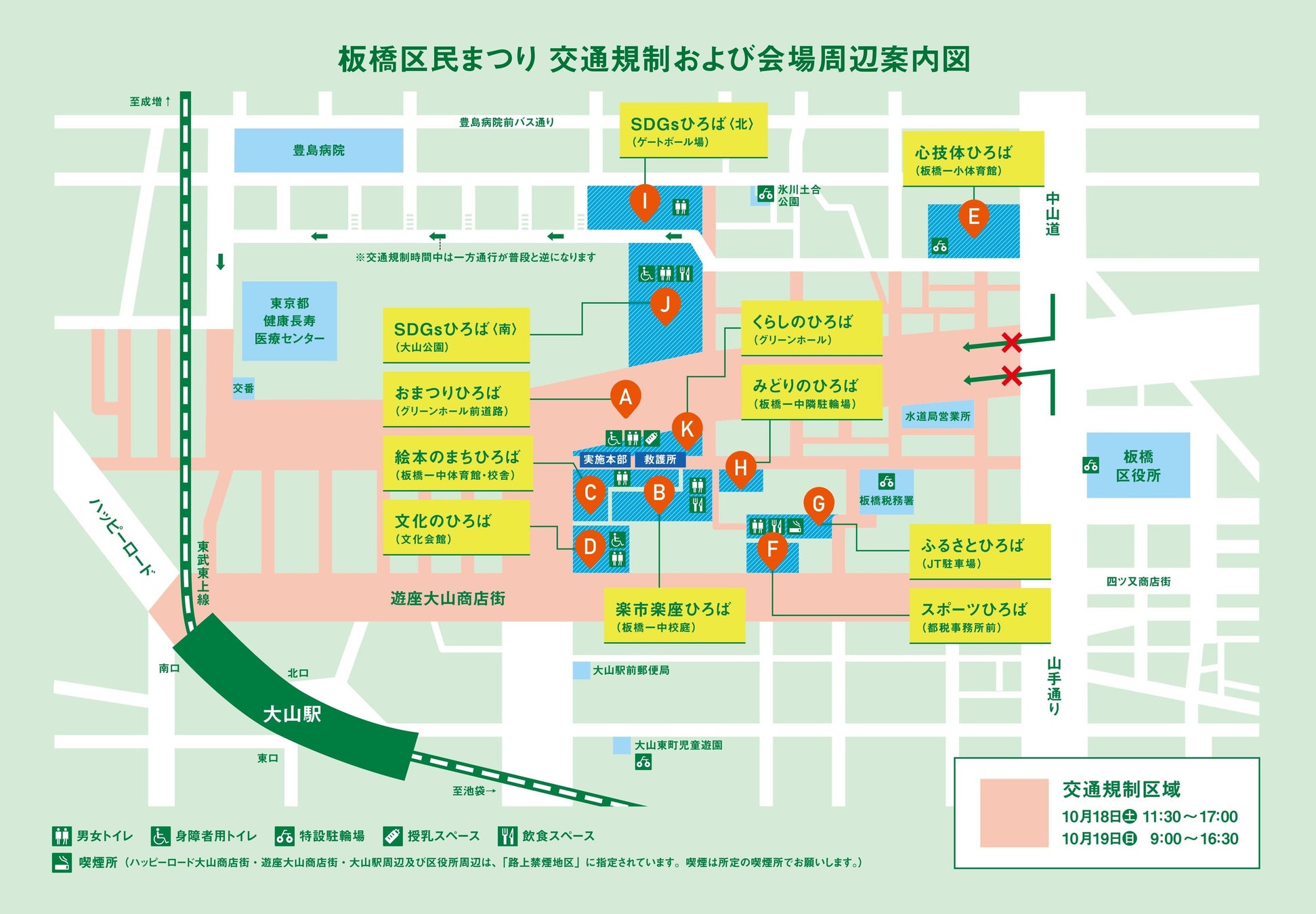 板橋区立グリーンホール(板橋区栄町36-1)前の道路をメイン会場(おまつりひろば)に、周辺の学校や公園等の施設、全11か所を会場として、板橋の魅力を凝縮したお祭りとなっています。