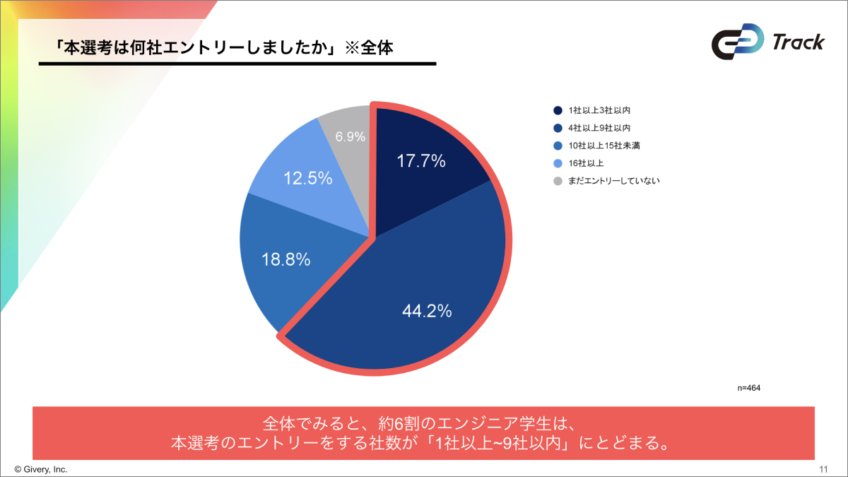 そこで今回、「テクノロジースキルを経営資源に」を理念に、多くの人々や組織が創造力(エンジニアリング力)を発揮できるようなよりよい未来の実現を目指して活動をしているTrackチームでは、2024年卒業予定のエンジニア職志望学生464名を対象に、就職活動に関する調査を実施いたしました。