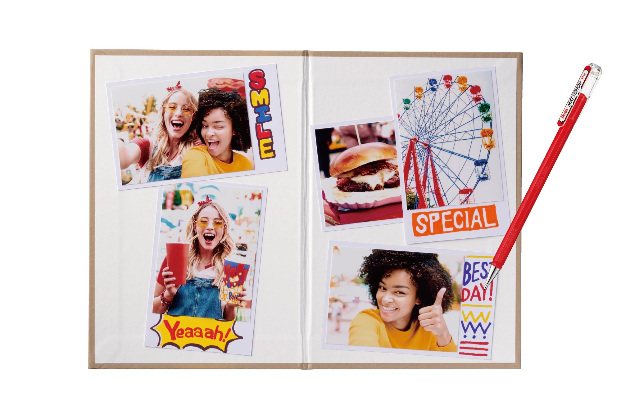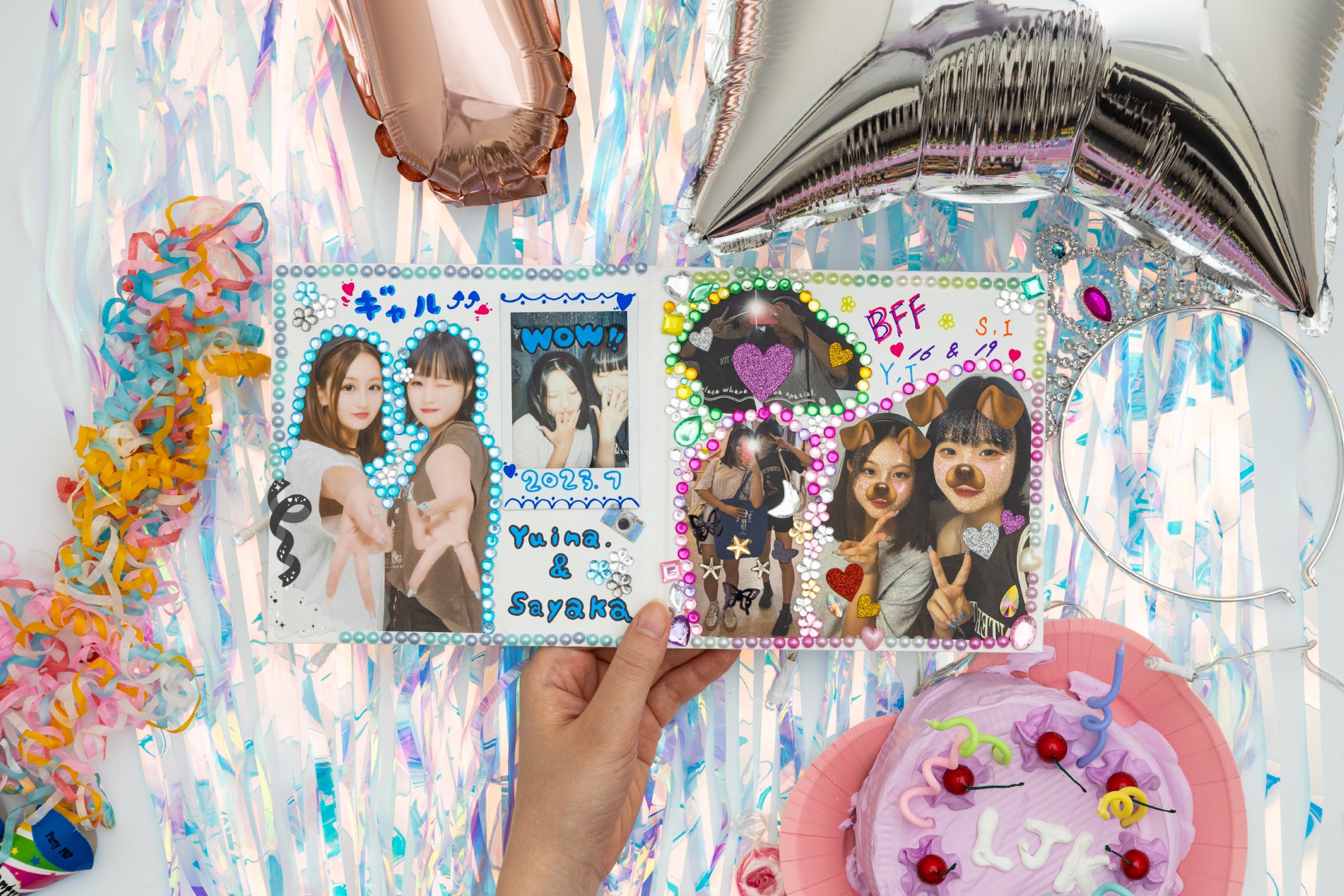 近年、10代の間で、誕生日や卒業祝いとして友達との思い出の写真やメッセージでデコレーションした「JK(女子高生)アルバム」が人気を博しています。マットホップはマットな筆跡で濃く鮮やかに発色するので、タイトルやメッセージ、イラストだけでなく、写真やマスキングテープへのデコレーションなど、華やかで存在感のあるアルバムをつくることができます。