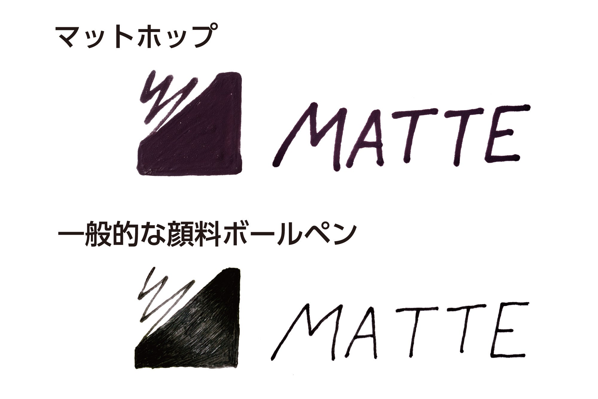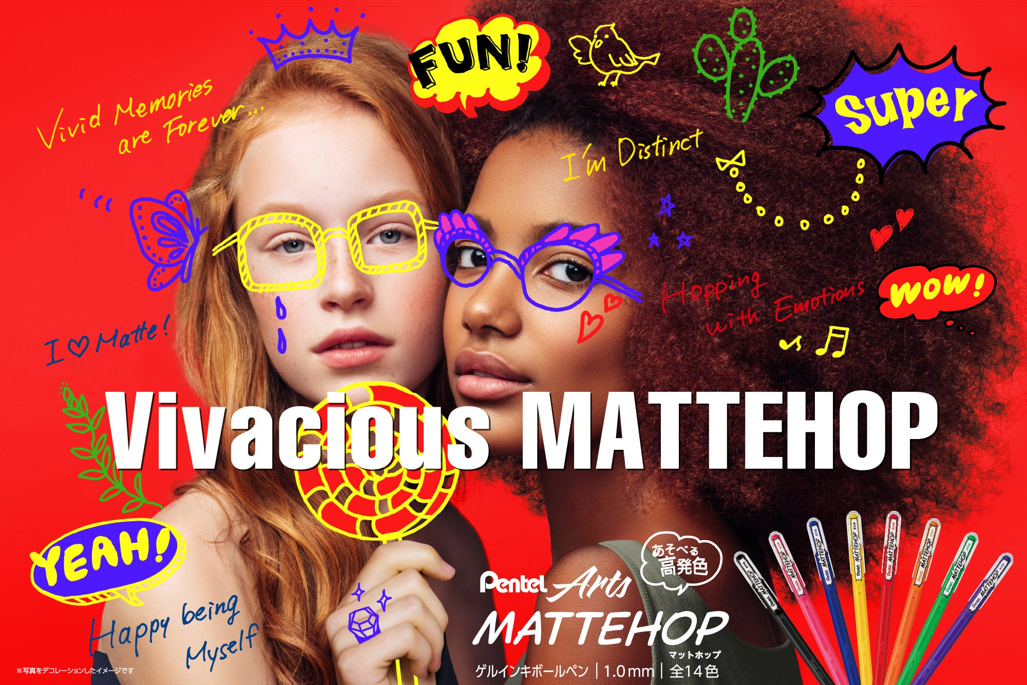 「マットホップ」とは、マットな筆跡を意味する「MATTE(マット)」と、夢中になって楽しむ心弾む様子を表現する「HOPPING(ホッピング)」を組み合わせた造語です。ボールペンの手軽さとえのぐのような発色のインキを併せ持つマットホップを自由に楽しむ人を「MATTEHOPPER(マットホッパー)」と呼び、Z世代に共感の輪が広がっていくことを目指しています。