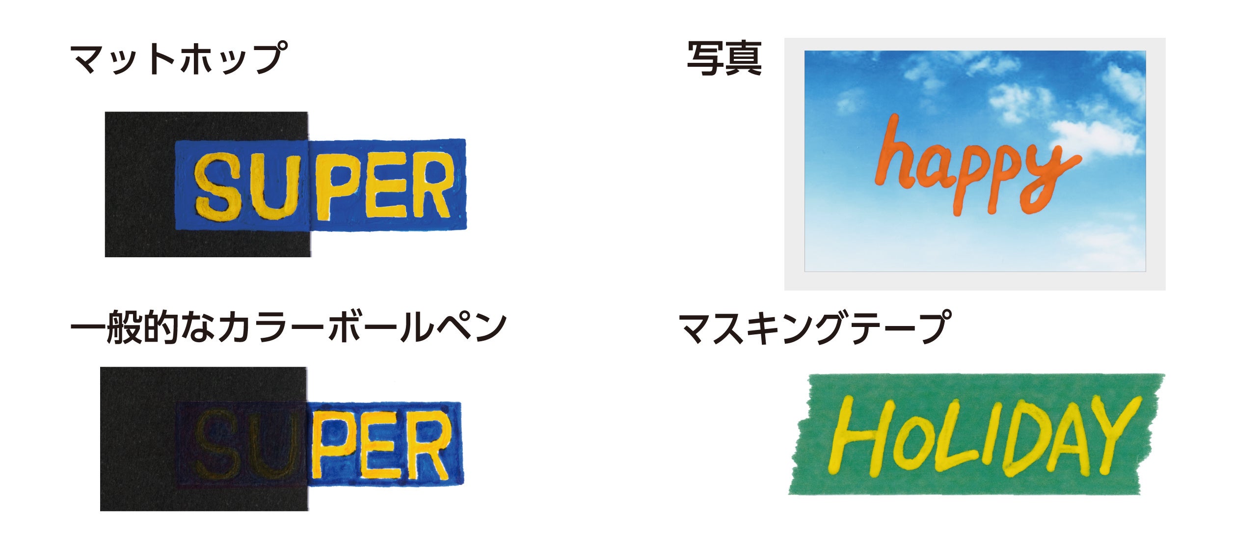 2.カラーペーパーや写真、マスキングテープにも濃く鮮やかに発色