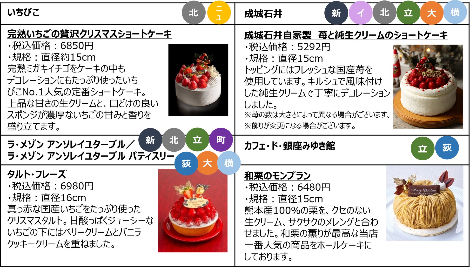 ・各館の注意事項に関しては、クリスマスケーキ&デリWeb予約特設ページにてご確認ください。