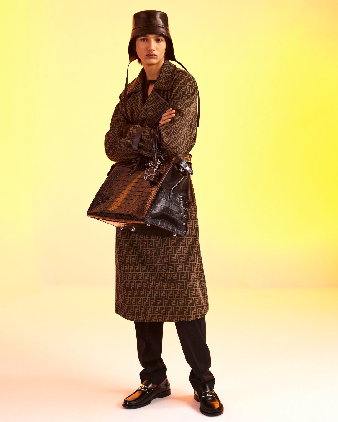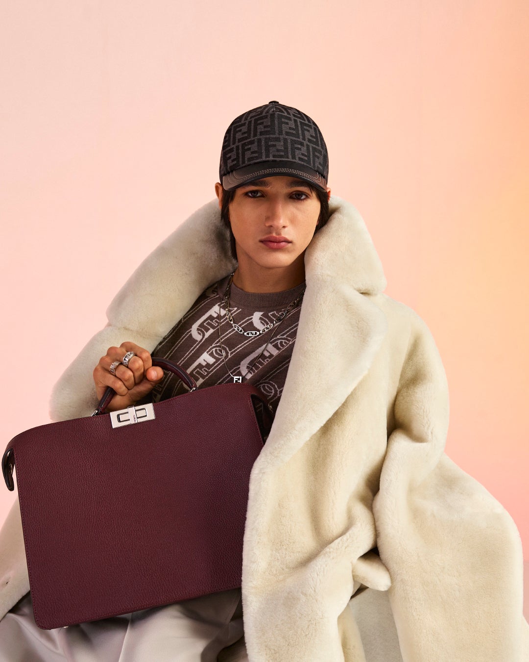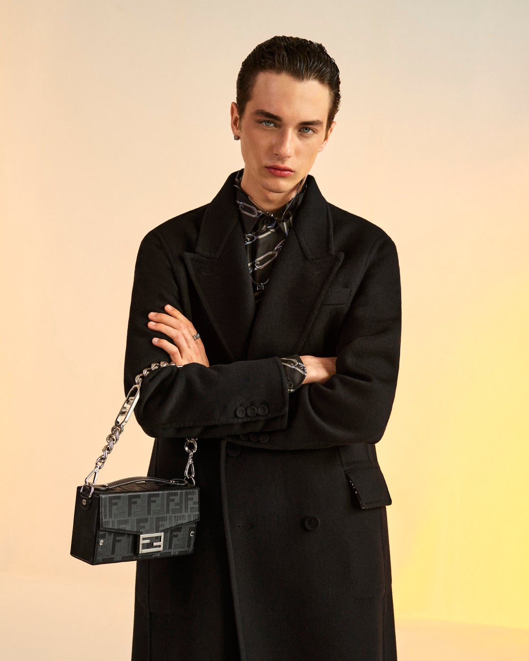 ノスタルジックなフットウェアには、スカラップトリムのパテント オーロック ローファーや、ツートンカラーのウィングチップチェルシーブーツ、腕時計のストラップで留めるメリージェーンブローグなどがラインナップし、新作のスニーカーはダイナミックなストレッチの「FF」ロゴを特徴としています。「ピーカブー(Peekaboo)」バッグは、無地のなめらかなグレインレザーに「FF」ロゴのパネルをあしらったラージサイズのかっちりとしたショッパーが登場。今シーズンを象徴するヴィシーチェックウールを配し、「ピーカブー フォーティエイト(Peekaboo Forty8)」と名づけました。「バゲット(Baguette)」は、大きな「FF」を型押ししたソフトトランクと、小さくしたエキゾチックなミニチュアチェーンバッグをそろえています。世界初の試みとして、暗号通貨とデジタル資産のためのデジタルハードウェアウォレットとして、世界をリードする「レジャー ナノ X(LEDGER Nano X)」のために、オーロック モチーフとバゲットのデザインを併せ持つラグジュアリーなテックアクセサリーが誕生しました。