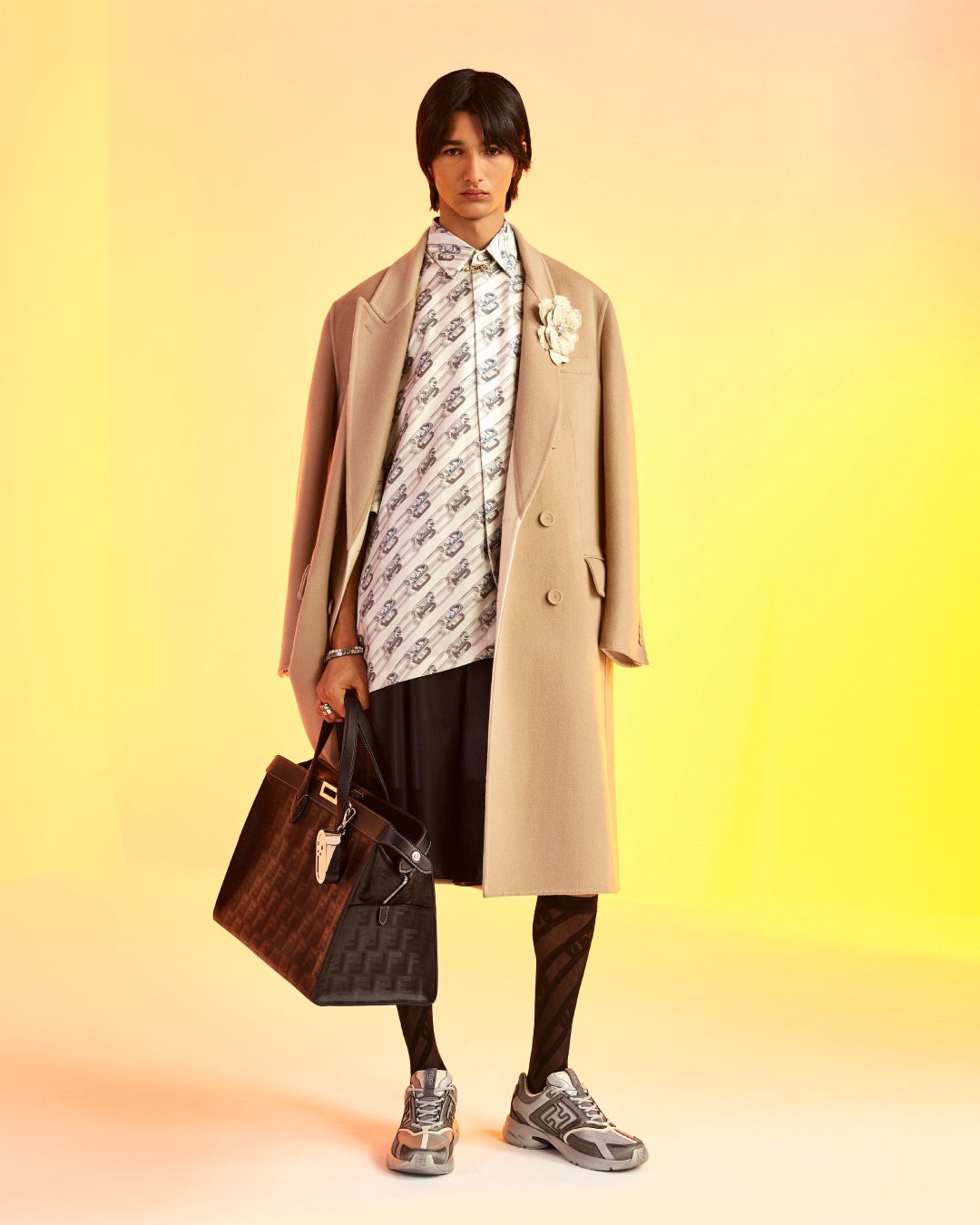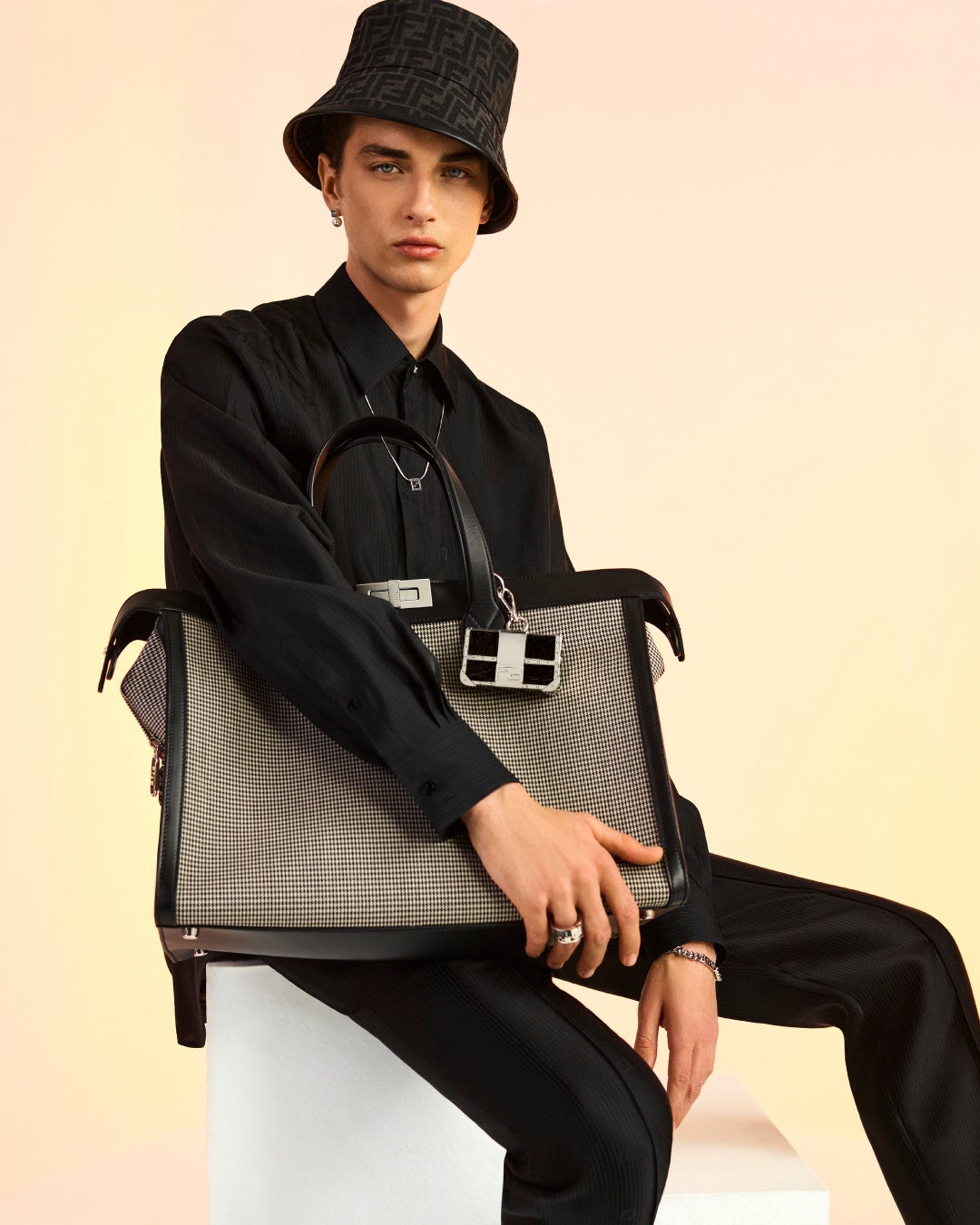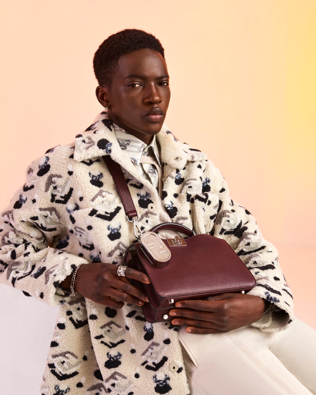 ノスタルジックなフットウェアには、スカラップトリムのパテント オーロック ローファーや、ツートンカラーのウィングチップチェルシーブーツ、腕時計のストラップで留めるメリージェーンブローグなどがラインナップし、新作のスニーカーはダイナミックなストレッチの「FF」ロゴを特徴としています。「ピーカブー(Peekaboo)」バッグは、無地のなめらかなグレインレザーに「FF」ロゴのパネルをあしらったラージサイズのかっちりとしたショッパーが登場。今シーズンを象徴するヴィシーチェックウールを配し、「ピーカブー フォーティエイト(Peekaboo Forty8)」と名づけました。「バゲット(Baguette)」は、大きな「FF」を型押ししたソフトトランクと、小さくしたエキゾチックなミニチュアチェーンバッグをそろえています。世界初の試みとして、暗号通貨とデジタル資産のためのデジタルハードウェアウォレットとして、世界をリードする「レジャー ナノ X(LEDGER Nano X)」のために、オーロック モチーフとバゲットのデザインを併せ持つラグジュアリーなテックアクセサリーが誕生しました。