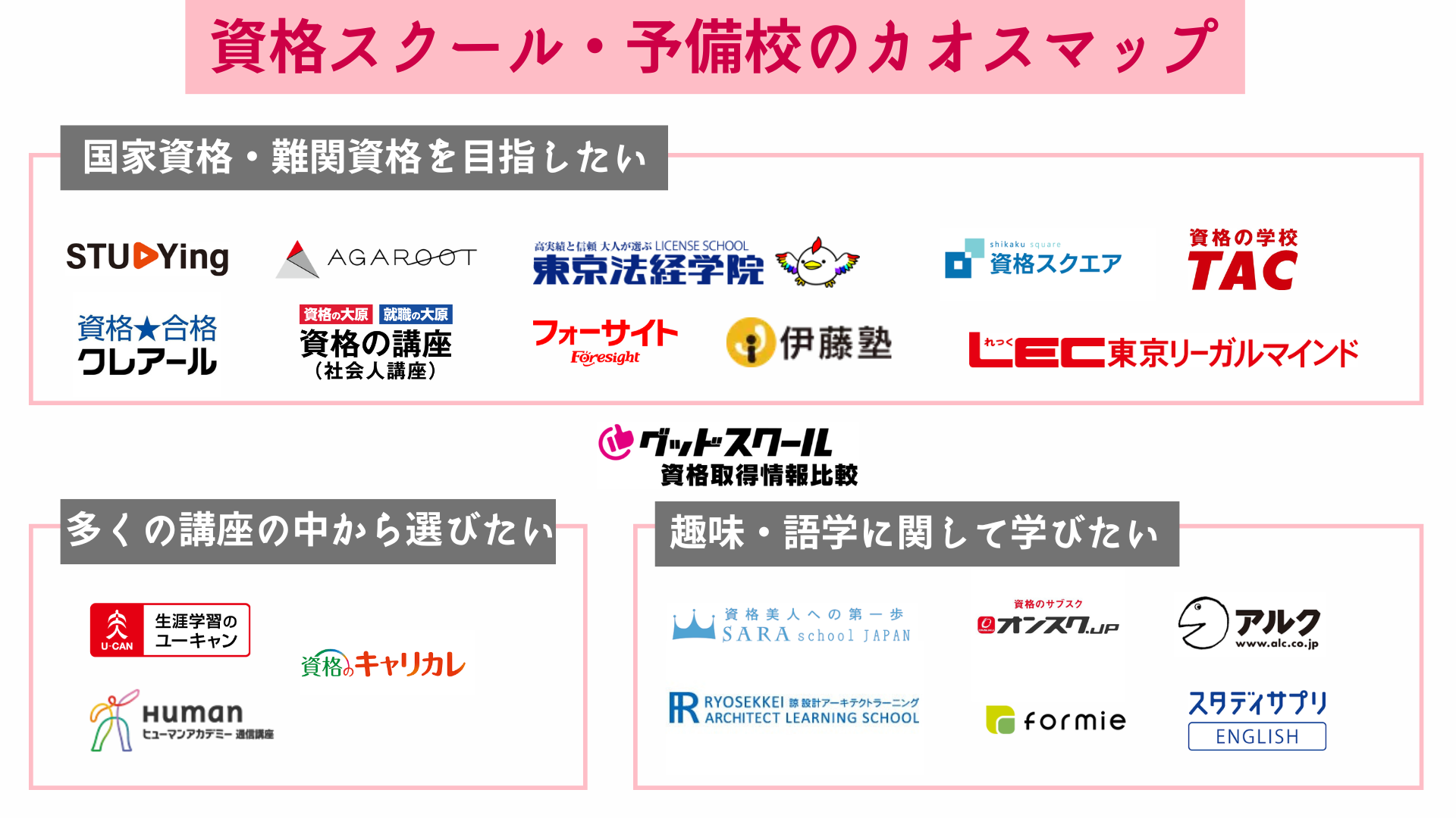 「グッドスクール・資格取得情報比較」が『資格スクール・予備校のカオスマップ』を公開