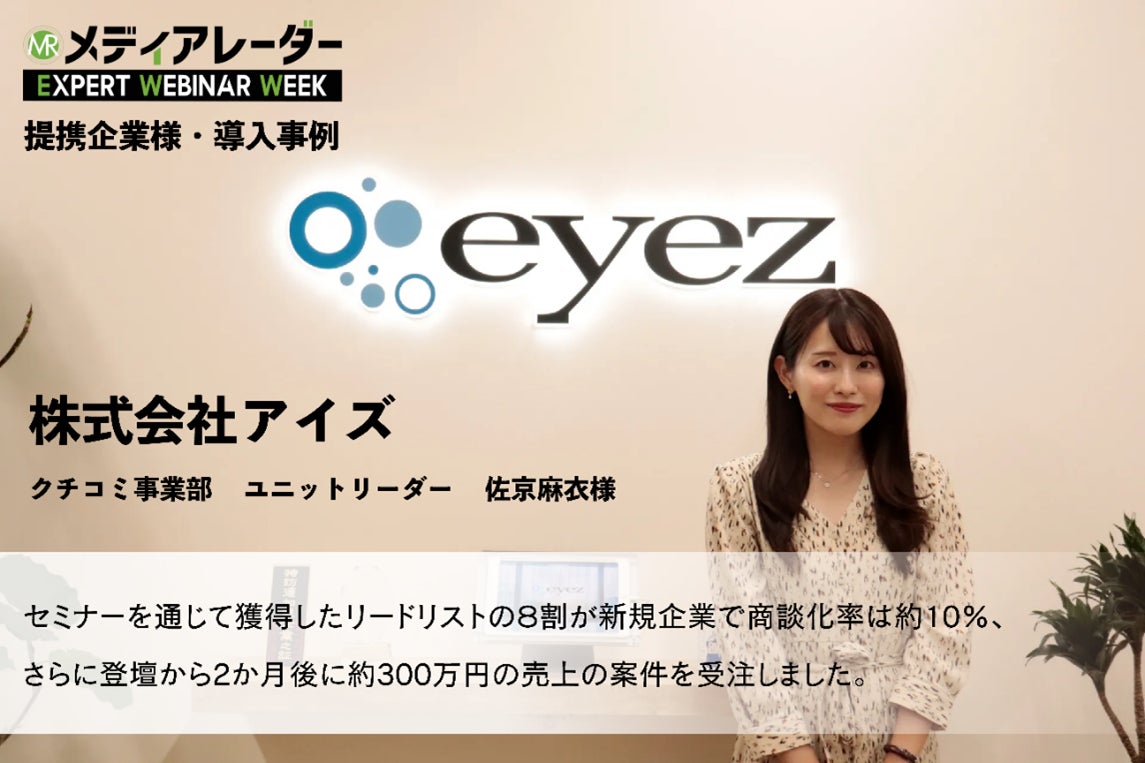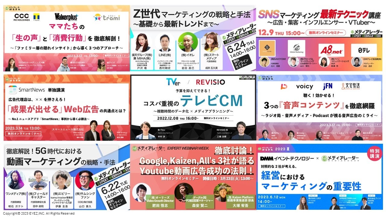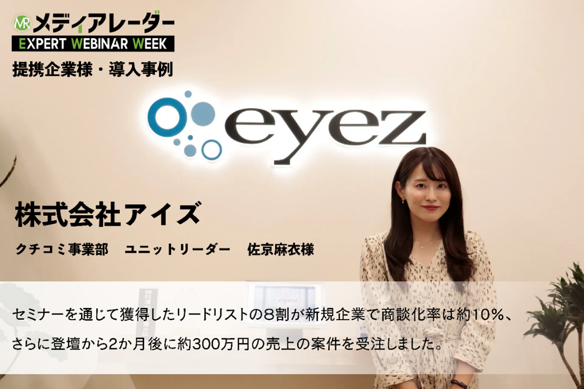 株式会社アイズ(所在地:東京都渋谷区、代表取締役社長:福島範幸、東証グロース:5242)が運営するNo.1*の広告業界のプラットフォーム「メディアレーダー」は、主催する「第12回 メディアレーダーWEEK 2023冬」の登壇企業の募集を開始しました。
