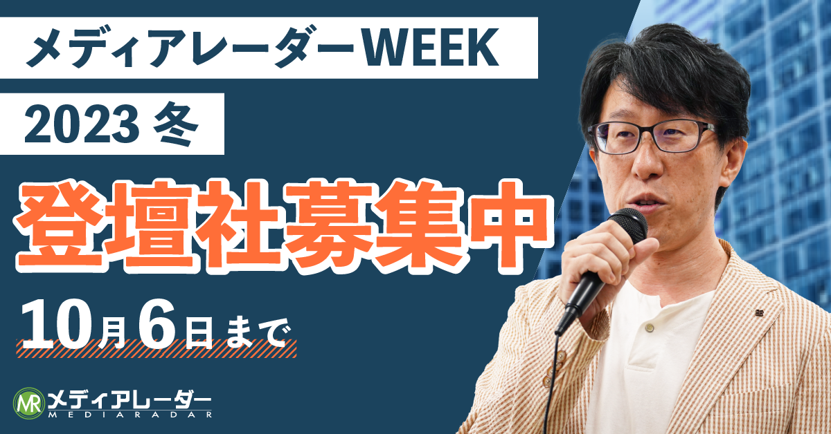 2023年12月11日(月)~12月15日(金)までの5日間にわたり「第12回 メディアレーダーWEEK 2023冬」の開催を予定しており、この度登壇企業の募集を開始しました。