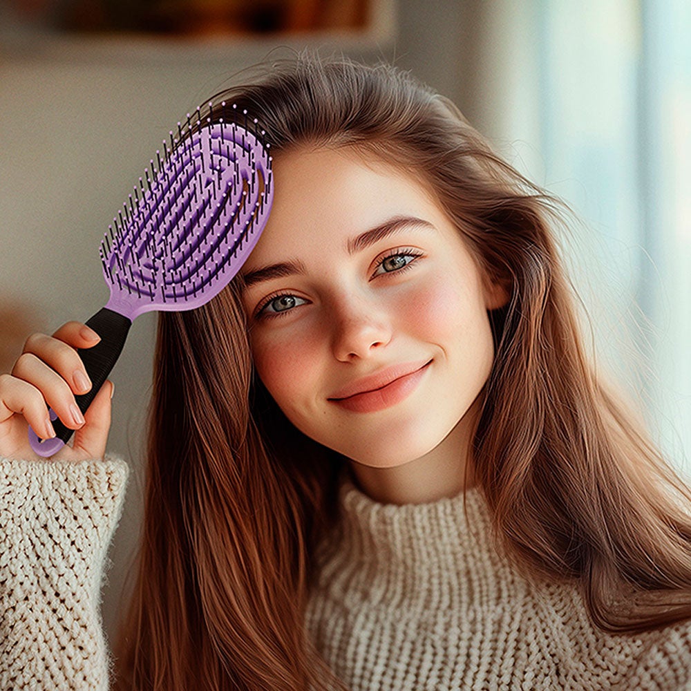 「NuWayBrush」は、髪に効果と質を求める方におすすめのヘアブラシです。髪をとかす、ドライヤーで乾かす、スタイリングする、頭皮ケアなど、さまざまな用途に使用できます。ブラシにはアルガンオイルとトルマリンが配合されたピンが使用されており、髪を滑らかにし、ツヤを与えます。