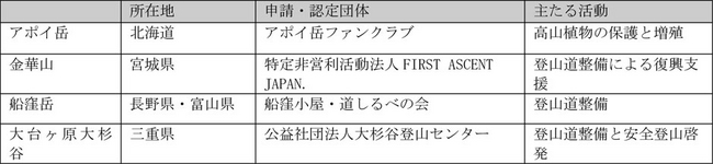 本年度は計15団体からの申請があり、アドバイザリーボードの助言のもとで、事務局で検討した結果、以下の4箇所となりました。各認定団体には、本年度中に基金事務局と調整のうえ、助成金を拠出します。併せて山と溪谷社の媒体を活用した広報支援を行う予定となっています。