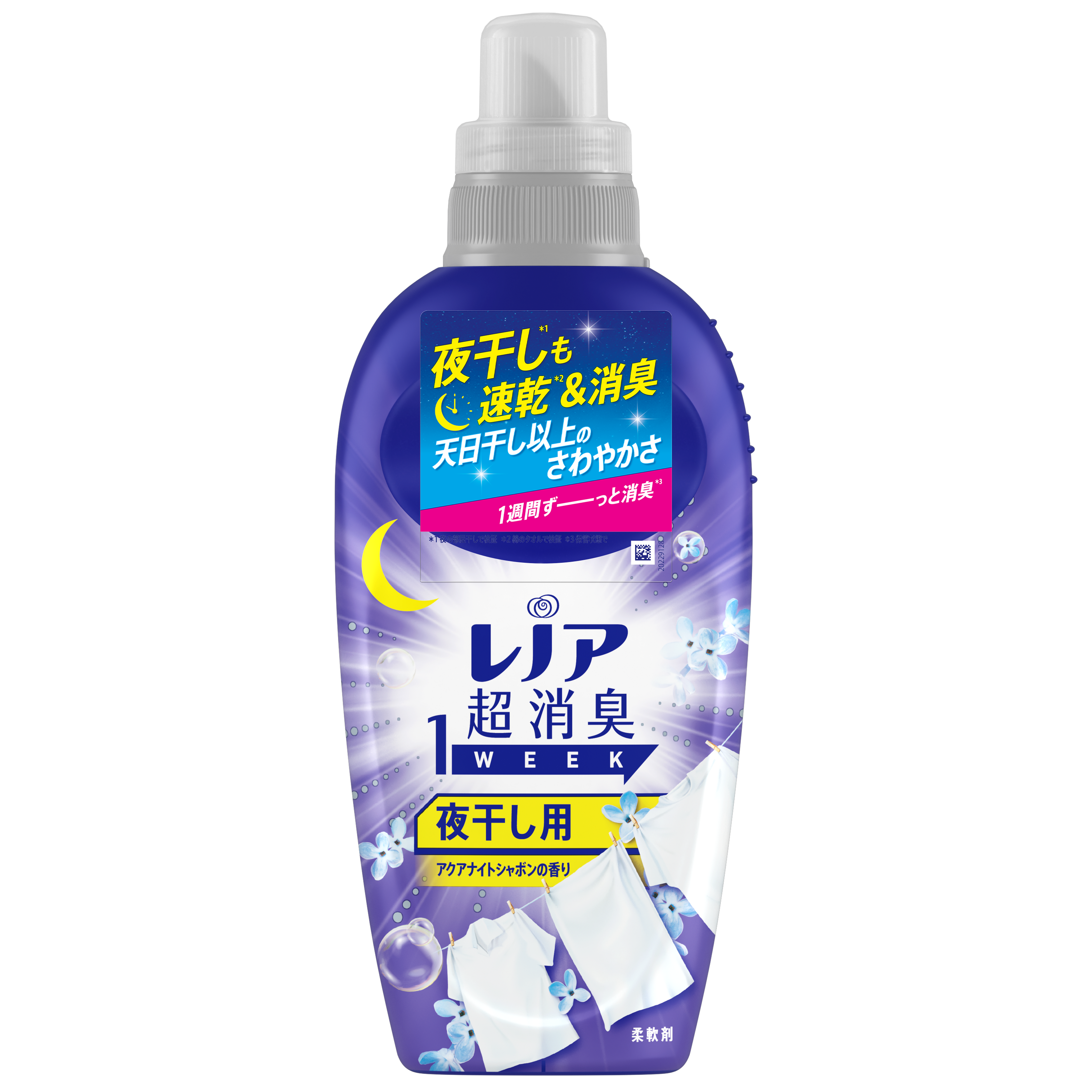 「レノア超消臭1WEEK」シリーズのリニューアルに併せて、同シリーズの全製品ラインアップのパッケージを刷新します。また、数量限定の新製品「レノア超消臭1WEEK 夜干し用アクアナイトシャボンの香り」は、夜の時間に消臭成分がじっくりと浸透することで、天日干しよりもさわやかな仕上がりになります。日中働いていて夜しか洗濯できない方や、洗濯物が多すぎて夜も洗濯する必要があるご家庭など、夜干しが必要な消費者ニーズに合わせてお使いいただけます。