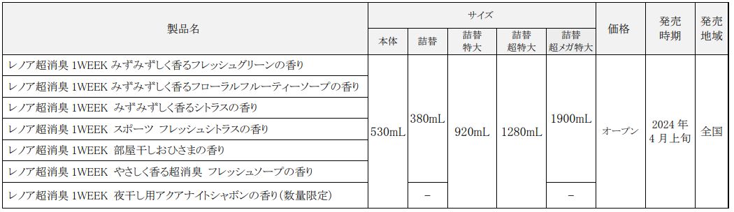 P&Gジャパン合同会社(本社:神戸市)は、衣料用柔軟剤ブランド『レノア』の、1週間消臭効果が持続*2する「レノア超消臭1WEEK(ワンウィーク)」シリーズの全ラインアップをリニューアルし、2024年4月上旬より全国で発売します。さらに新製品「夜干し用アクアナイトシャボンの香り」を数量限定で発売します。