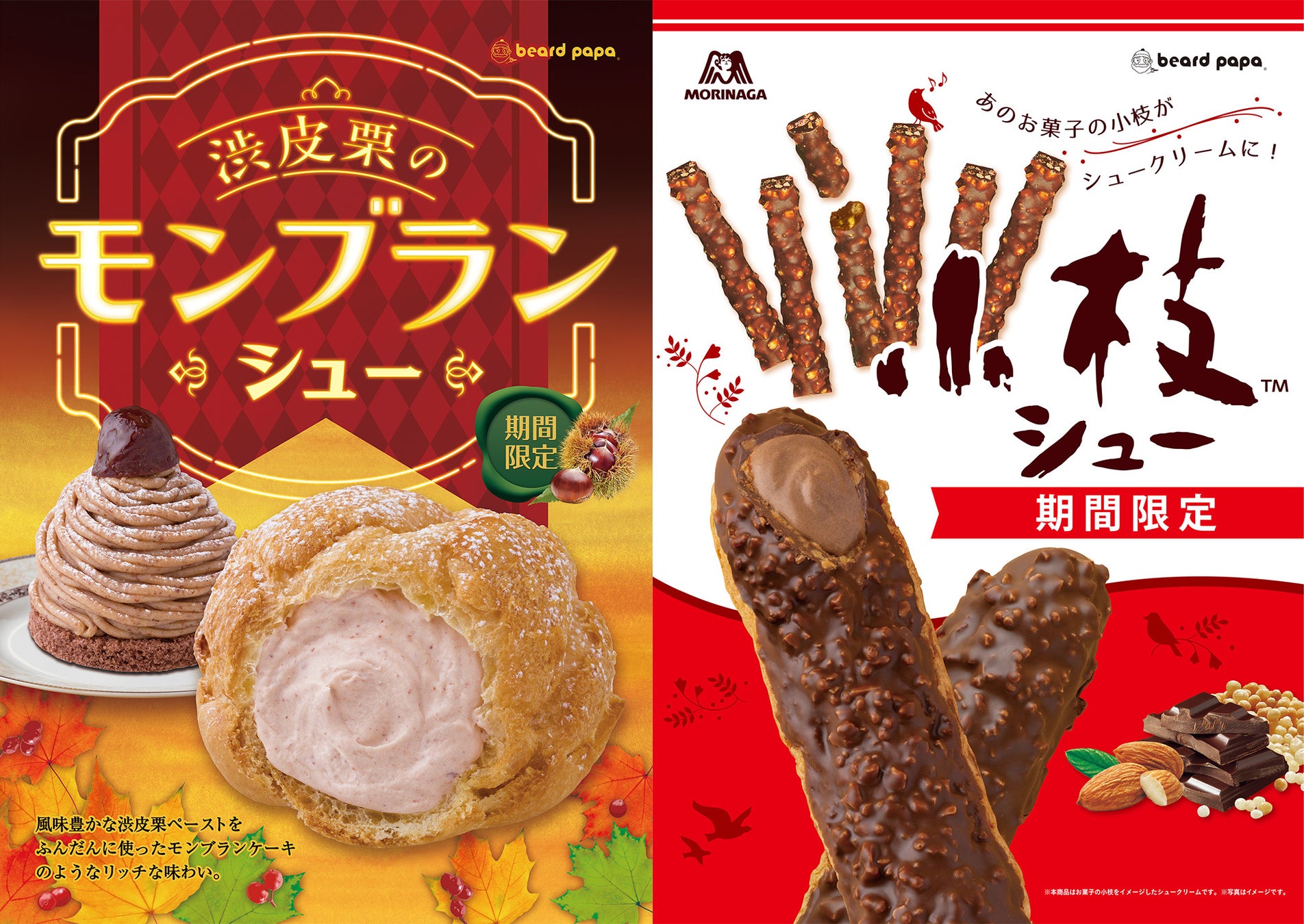 また、話題のコラボシュークリーム“小枝シュー”も9月から継続して販売中。食欲の秋にぴったりな、何度でも食べたくなるシュークリーム2種類をぜひご賞味ください。